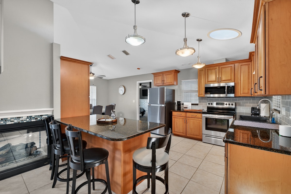 Located just minutes from the beach, be sure to bring the whole family to this spacious home with lots of room for fun. Step into a bright, open living space designed for comfort and connection. After a day at the beach, cool off in your private screened pool, or fire up the grill for an evening meal under the beautiful Florida sunset. The converted garage is a guest favorite- your own game room for family fun and friendly competition. Perfect for kids, teens, and adults alike!
