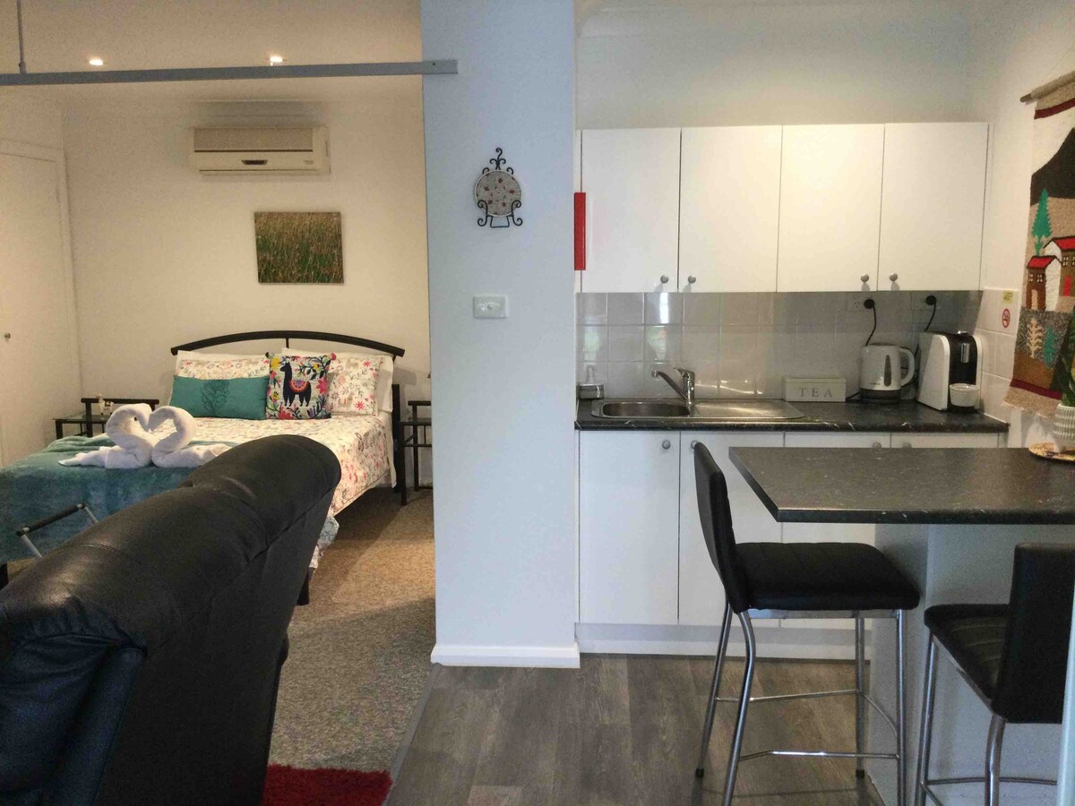 Centrally located in the suburbs of Newcastle. Red Gum Guesthouse is a free standing studio. The studio is spacious, clean and modern with a comfortable queen bed. It is equipped with all the essentials for your stay. Situated close to Glenrock, the Fernleigh track, Merewether and Dudley Beach. Plenty of options for the surfer, mountain biker or nature lover! Westfield Kotara is nearby and Newcastle CBD a short drive away. Access to public transport is only a 4min walk away.