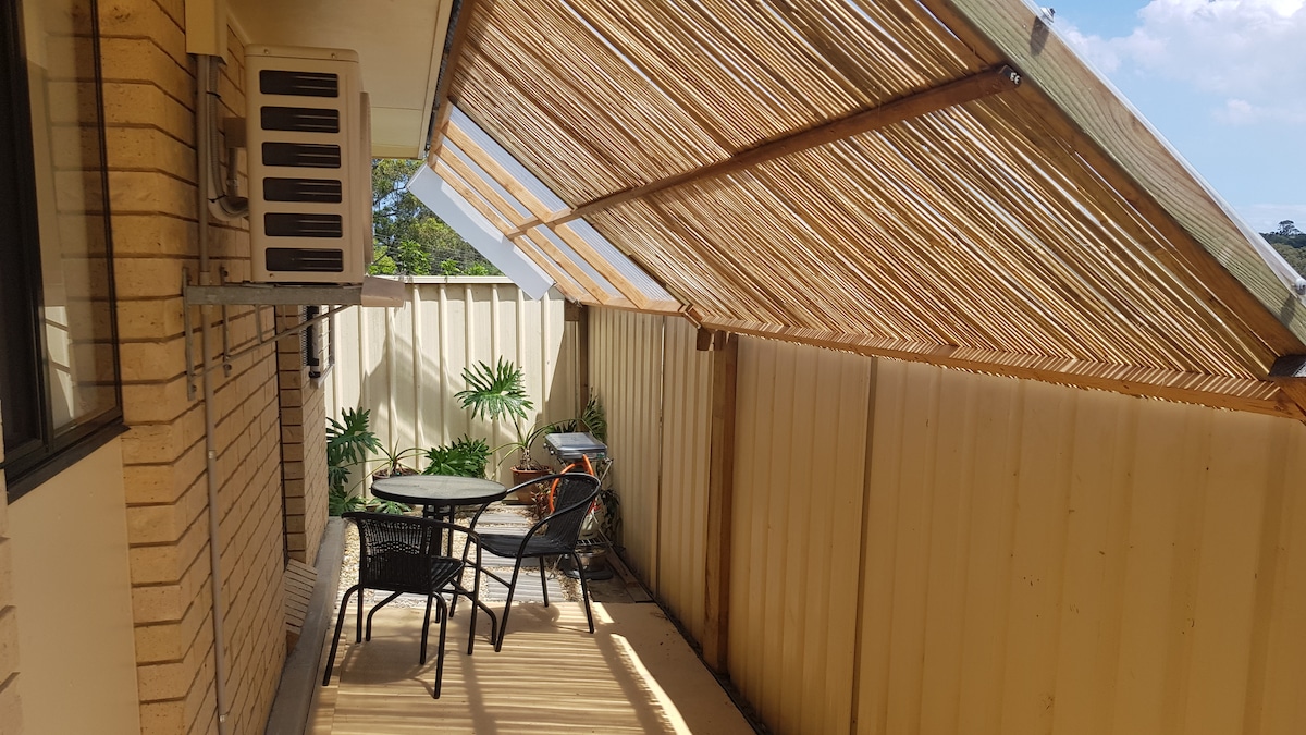 Convenient location at the top of Lake Macquarie. Good access to all the hospitals, shopping centres, lake tourist areas and beautiful Speers Point park. Fully self contained with microwave, hotplate, good kitchenette. Initial breakfast items provided, muesli or rolled oats, eggs, bread, butter, spreads, tea, coffee, milk. Washing machine in bathroom & drying space outside. Host on hand.. Parking on site. NOTE: No TV provided, just a Blue Tooth speaker to play your devices through.