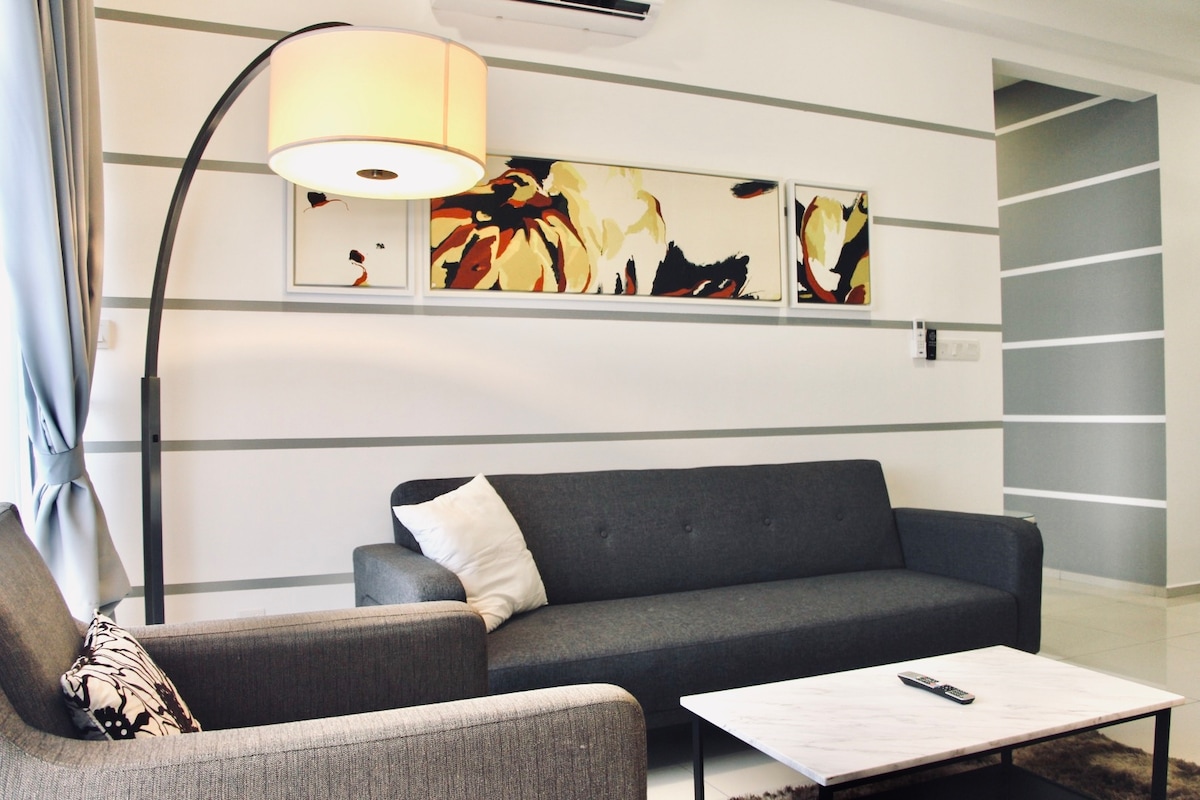 Our Grand Loft is packed with all sorts of amenities and facilities that you'll ever need! We are furnished with premium quality furnitures , entertainment unit (Karaoke) and exquisite finishing that gives not only more value but also your experience staying here. We are located just 15 minutes away from the CBD, 5 stops away from Bukit Bintang (Pavillion) & 6 stops away from KLCC by train. We are strategically located with a 4 minutes covered walk through the mall to the MRT station at lv 1