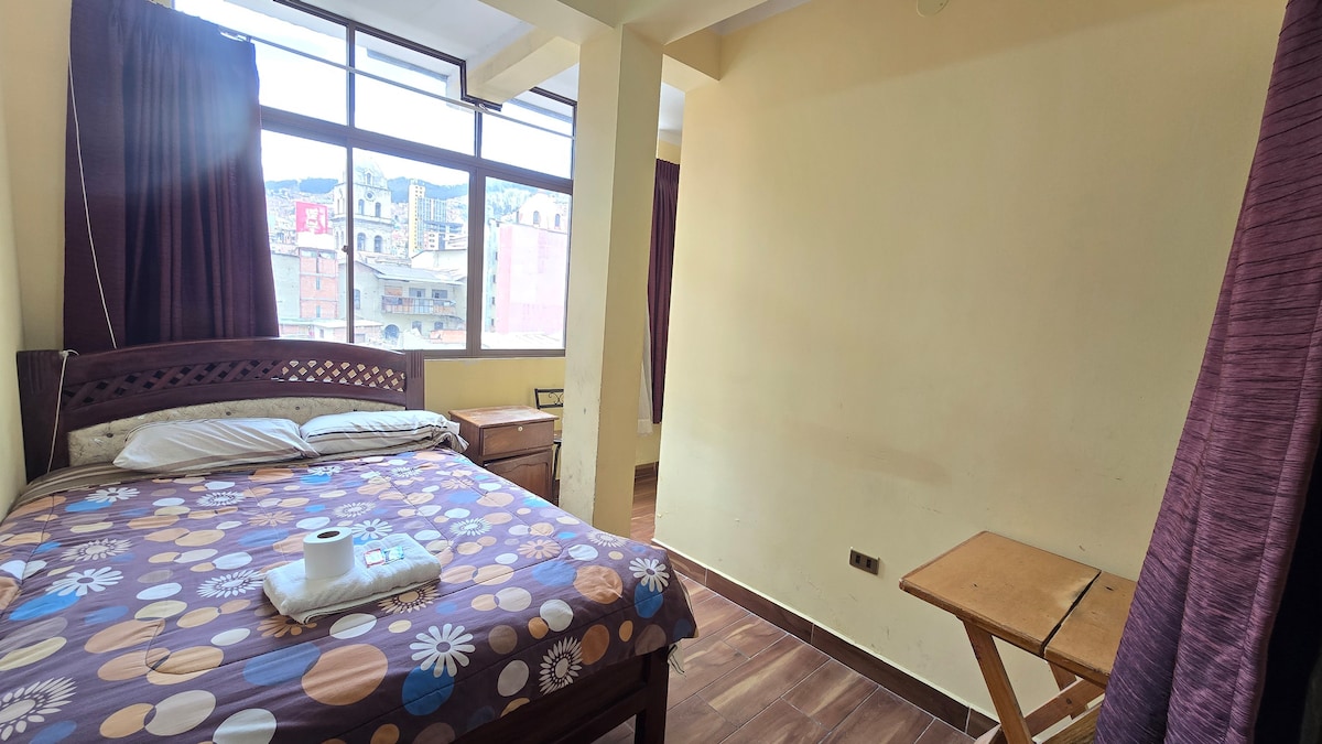 ¡Bienvenido a tu centro de exploración! Esta es una suite completamente privada (apartamento pequeño) situada en el corazón de La Paz. ¡La Plaza Abaroa está literalmente a un paso! Estarás cerca de todo. El espacio entero es tuyo para disfrutar. Su entrada privada, dormitorio con TV y escritorio, baño, cocina y comedor. El espacio no es moderno ya que es una construcción antigua, pero es perfecto para viajeros sin complicaciones.