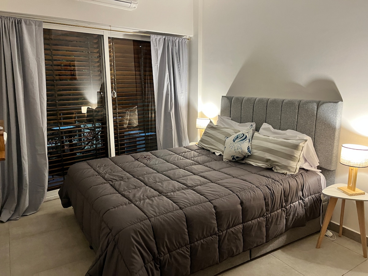 Departamento de diseño tranquilo y elegante en edificio de categoría "Los Galgos" ubicado en la mejor zona de recoleta, rodeado de la mejor gastronomia, comercios, centros turísticos, accesos y transporte. Totalmente equipado para 4 personas cuenta con lavasecarropas, microondas, horno, anafe, 2 aire acondicionados, 2 tv, wifi veloz, cama somier. Edificio de categoria, con distintos servicios tipo hotel: seg 24hs, limpieza, pileta, cancha de tenis, SUM, restaurante, gym y sauna