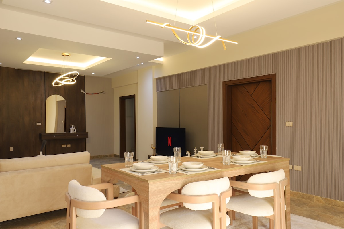 IMPORTANT NOTICE: PARTIES and UNREGISTERED EXTERNAL GUEST are STRICTLY NOT ALLOWED in the house 🙏 NOTE: The apartment is located on the second floor with stairs access (no elevator). Doorman will carry all luggage upon check-in. Luxury 4-bedroom apartment in a prime location near Cairo Festival City Mall, 5A, and Downtown Mall. The apartment comfortably accommodates 7 people and is just 20 minutes from the airport. It is close to various shopping, dining, and entertainment options.