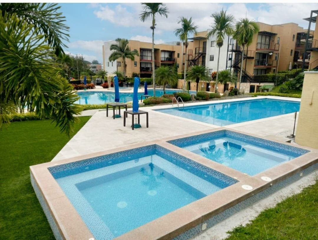 Apartamento nuevo con capacidad para 7 personas, ubicado en el municipio con el clima mas cálido del departamento del Quindío. A tan solo 5 min del aeropuerto, 18 min de Armenia y muy cerca a sitios turisticos tales como el Parque del Café, Salento, Valle del Cocora y Panaca. El condominio cuenta con vigilancia privada las 24 horas, parqueadero privado gratuito, 3 hermosas piscinas tipo Resort, Sauna, Jacuzzi climatizado, zona de arenas para niños, juegos infantiles y cancha sintética