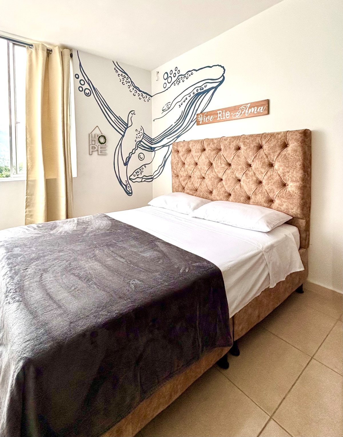 Apartamento nuevo con capacidad para 7 personas, ubicado en el municipio con el clima mas cálido del departamento del Quindío. A tan solo 5 min del aeropuerto, 18 min de Armenia y muy cerca a sitios turisticos tales como el Parque del Café, Salento, Valle del Cocora y Panaca. El condominio cuenta con vigilancia privada las 24 horas, parqueadero privado gratuito, 3 hermosas piscinas tipo Resort, Sauna, Jacuzzi climatizado, zona de arenas para niños, juegos infantiles y cancha sintética