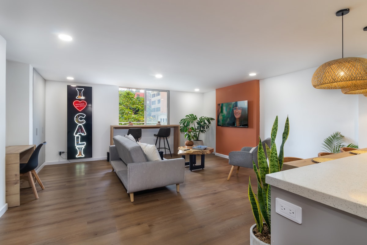 ★ Prime Location with Private Jacuzzi ★ Welcome to your stylish escape in Cali's most vibrant neighborhood. This modern 2-bedroom apartment offers everything you need for a comfortable and memorable stay, including a private jacuzzi, king & queen beds, A/C in every bedroom and dedicated parking, all just steps from top restaurants, cafes, and landmarks. Whether you're here to dance, explore or work remotely, this apartment brings you closer to everything that makes Cali unforgettable.