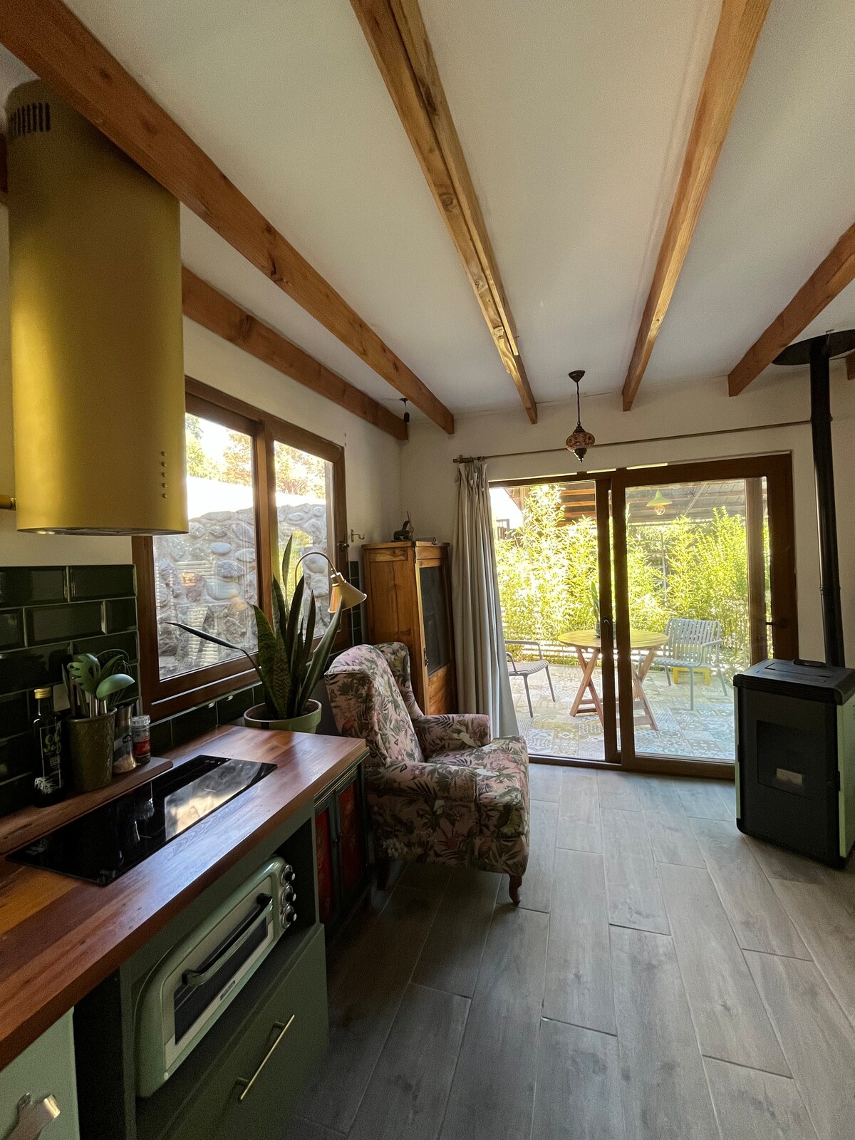 Lugar ideal para relajarse con la energía de la cordillera. Cabaña de atractivo diseño natural, situada a los pies del cerro Lican y a orilla del estero San José, situada a 10 min. del pueblo San José de Maipo. Posee una terraza bajo un parrón y otro lugar con parrilla. Piscina con agua de estero (no transparente). Un dormitorio matrimonial, un dormitorio con escritorio, un baño y un altillo con un futón. Ideal para parejas que quieran vivir el silencio y la tranquilidad en la naturaleza.