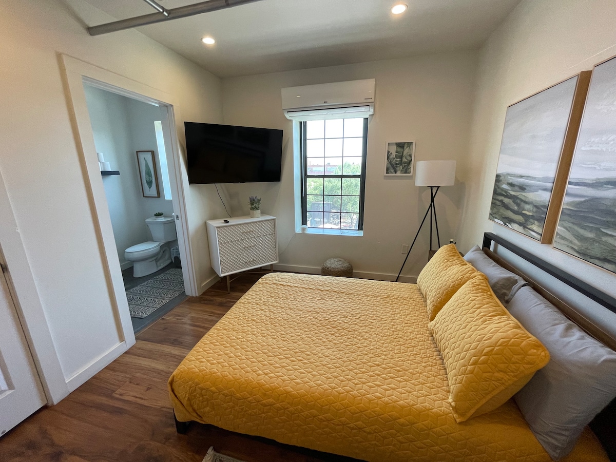 Acogedor 1 dormitorio con cocina y baño. Totalmente amueblado con cama tamaño king. Ubicado en un barrio urbano diverso del centro de la ciudad, NO hay aparcamiento gratuito disponible. Perfecto para aquellos a los que no les importen los paseos cortos. El apartamento está a 3 minutos a pie del estadio de béisbol/fútbol de la Universidad de Southwest, a 10 minutos a pie del centro de convenciones de El Paso, del distrito de entretenimiento del centro y de la agencia de pasaportes.