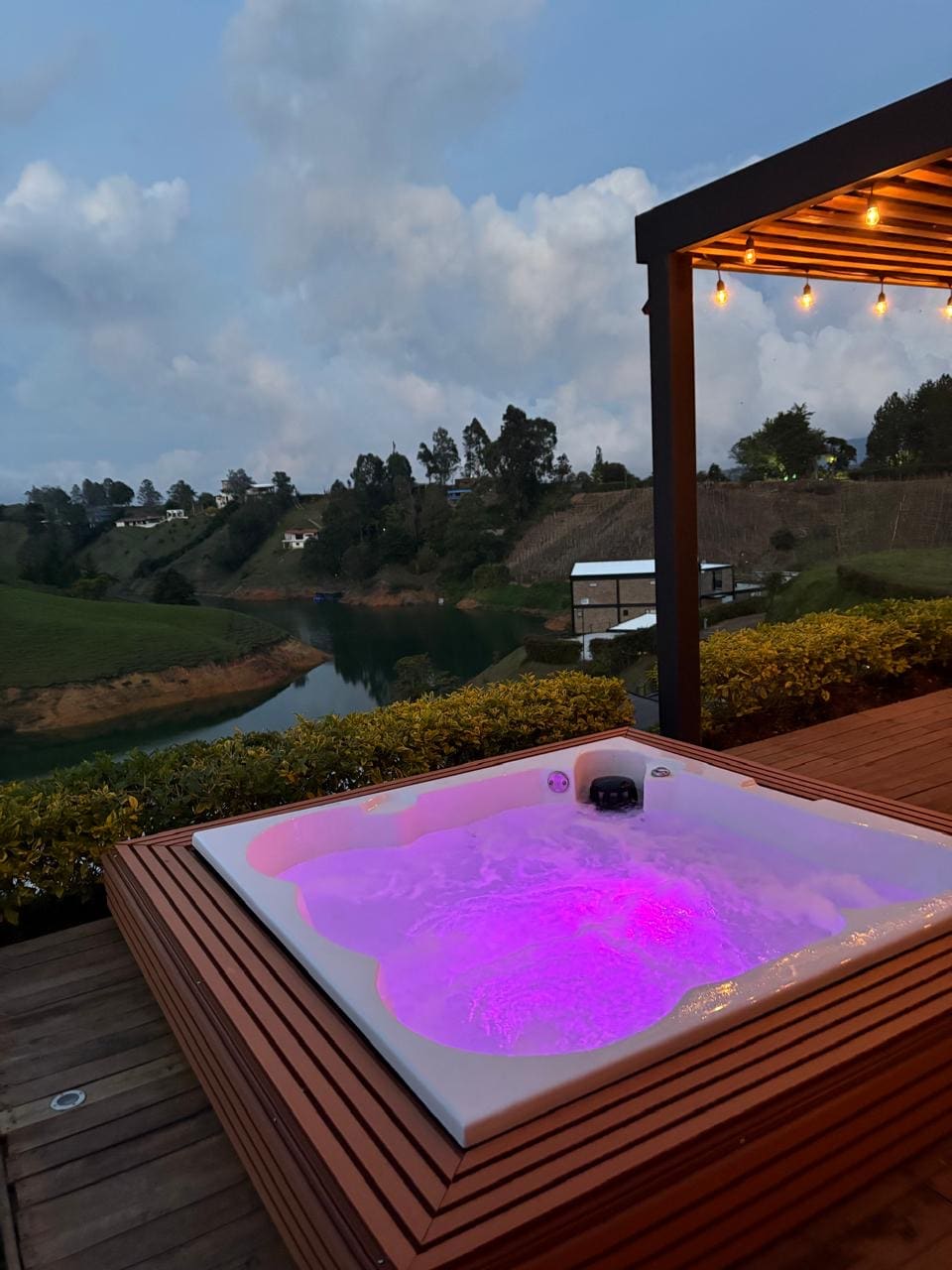"Disfruta del encanto y la tranquilidad en nuestra tiny lake house en la mejor ubicación, un refugio perfecto 100% privado en medio de la naturaleza. Relájate en un jacuzzi de lujo mientras admiras vistas únicas a la represa y a la famosa Piedra del Peñol. Que además cuenta con una chimenea , y una cocina completamente equipada para todas tus necesidades culinarias un deck exterior, muelle. Perfecta para hasta 4 personas, es el lugar ideal para desconectar y crear recuerdos inolvidables."