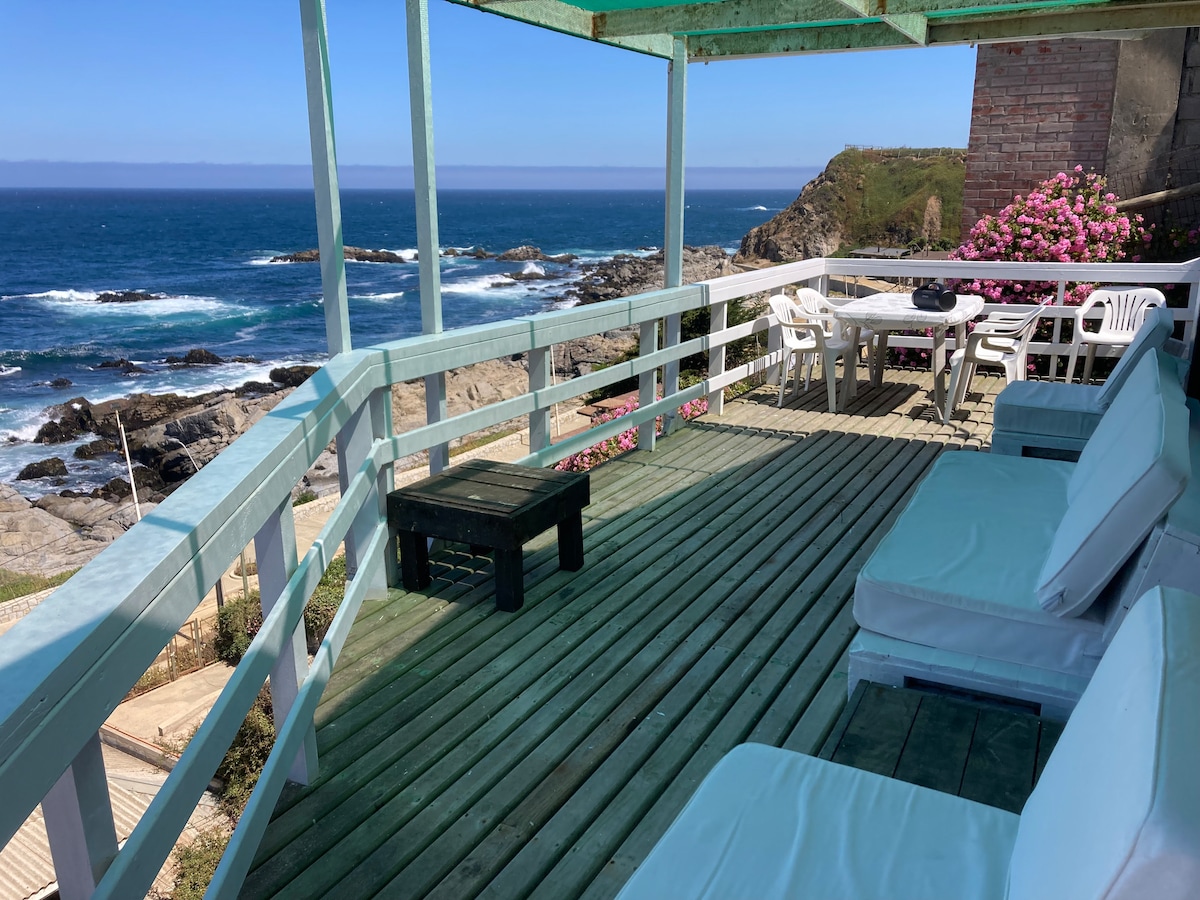 Prepárate para unos días con la mejor vista al mar, un sueño reponedor y para vivir momentos inolvidables. Nuestra casa está en primera línea de playa, con quincho y terraza frente al mar y una chimenea para los días fríos. Ubicada en un sector tranquilo y apartado, a pie de Supermercados y Restaurantes. Full equipada y muy cómoda, con todo lo necesario para tu estadía. Para acceder a la casa hay que subir una escalera desde el estacionamiento, no apta para personas con movilidad reducida