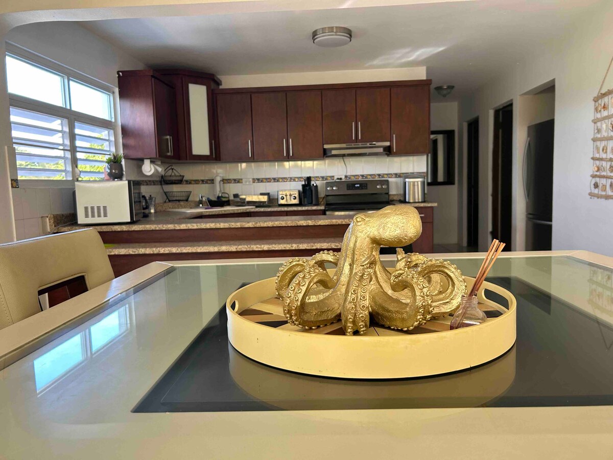 Nuestra acogedora casa ofrece un gran espacio para pasar con tu familia. Con 4 camas, este alojamiento tiene capacidad para 8 personas. El dormitorio principal tiene una cama tamaño king. El segundo dormitorio tiene una cama Queen Size Size. El tercer dormitorio tiene dos camas de tamaño completo. 2 baños: uno ubicado en el dormitorio principal. Unidades de aire acondicionado en todas las habitaciones y el área de la sala de estar. Antes de reservar, ten en cuenta que la red eléctrica en Puerto Rico puede ser inestable. De vez en cuando, es posible que experimentemos cortes inesperados de energía y agua. No tenemos generador de respaldo.