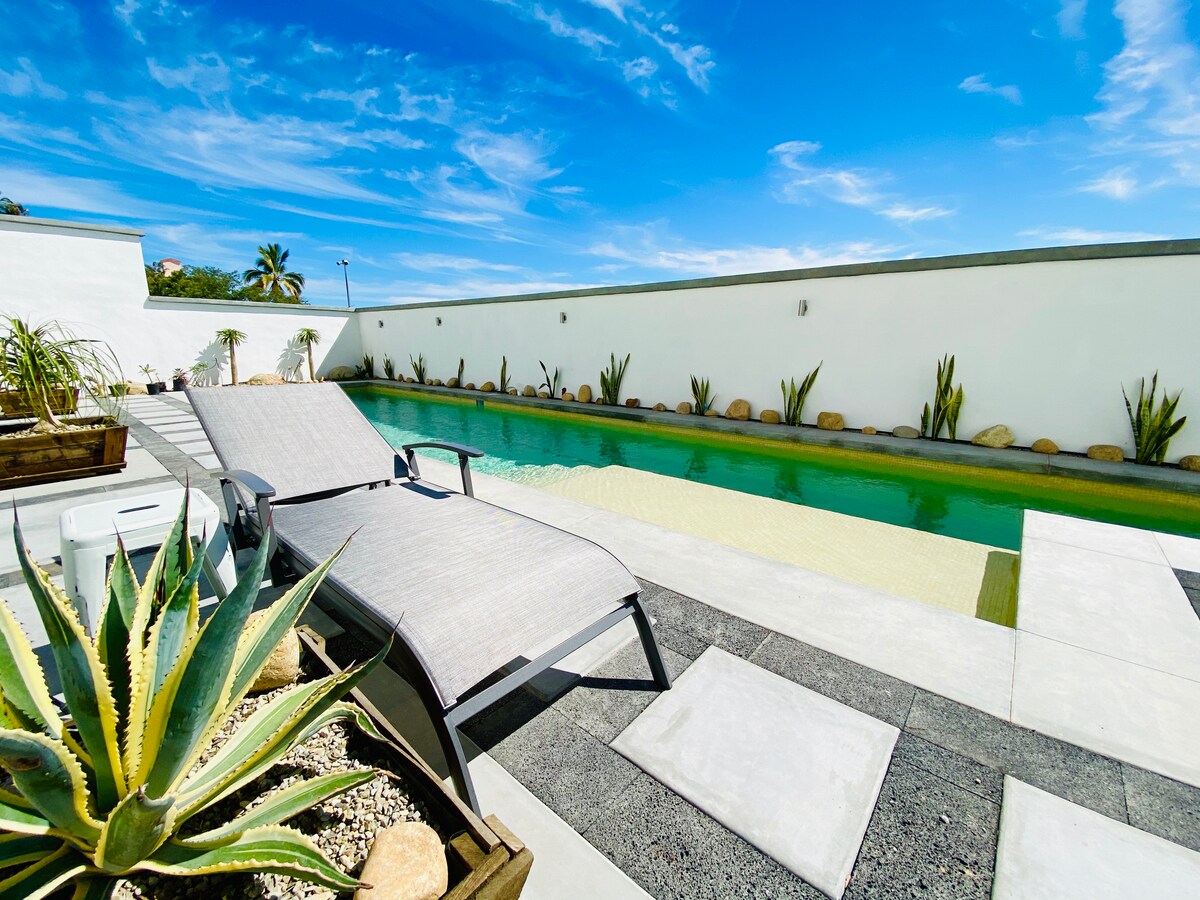 Nicely Located between Downtown and Beach to Experience amazing Historic Downtown & Ocean Views from your Private Terrace. Decorated Areas with all amenities such as AC, Queen Size Bed, Parking and much more to provide a Comfortable Stay. Wonderful Swimming Pool & open areas to enjoy Cabo's weather. Only 5 Minutes from Downtown Art District, Best Restaurants, Beach, Marina Puerto Los Cabos, Super Markets, Golf Course & Tennis Court. Only 15 Mins from Airport.
