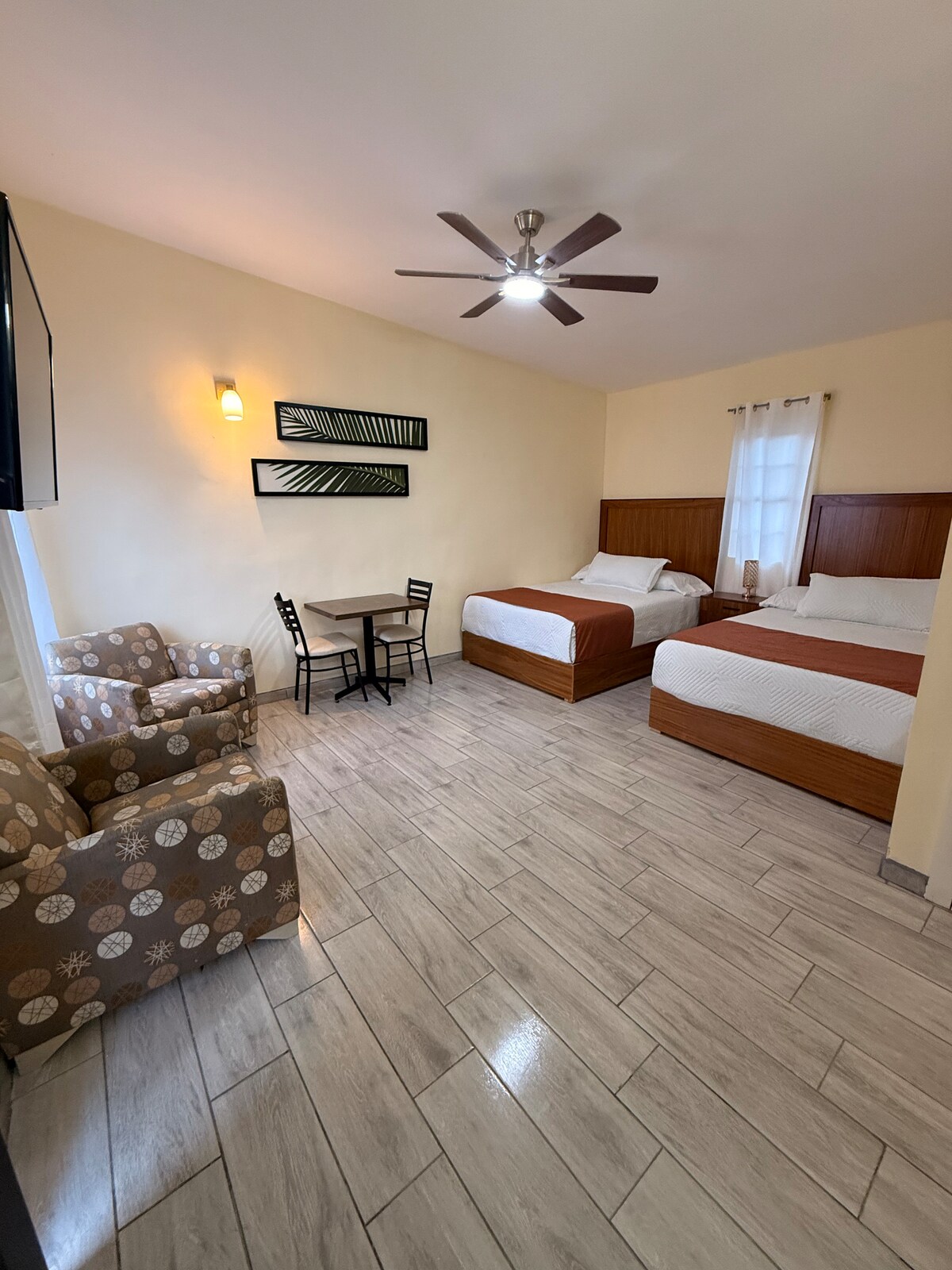 Un lugar comodo y limpio, con aire acondicionado, seguro, boiler, estacionamiento compartido dentro de la propiedad con cerco con puertas con candado, ideal para descansar si estas de paso o de vacaciones, cercano a la carretera principal, con una cocina media, sin estufa; pero si te quedaras varios días, podemos proveerte 1 parrilla de gas con 1 tanquesito (tu compras el resto) debes pedirla, puedes acampar en el patio también si traes casita de camping y asar y hacer fogata afuera.