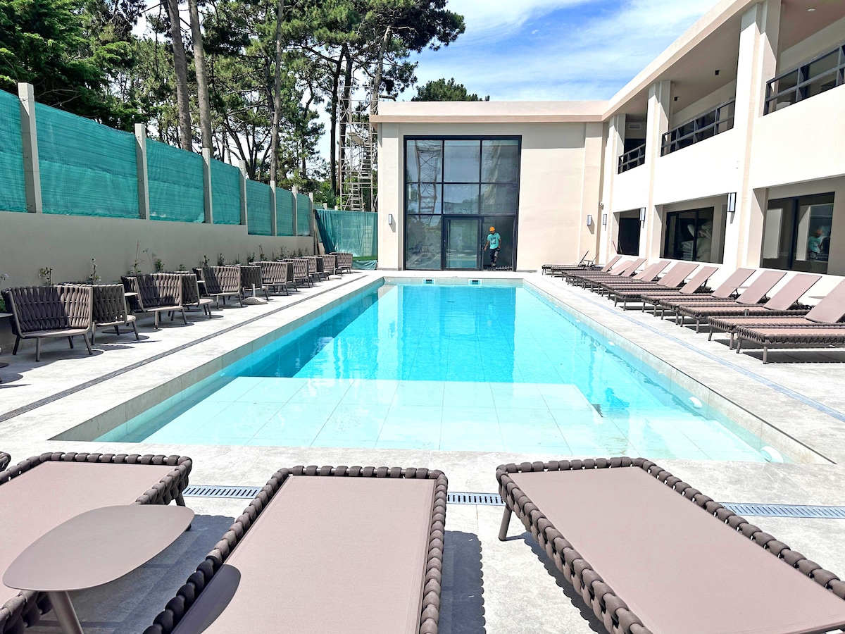 Precioso apartamento con vistas al mar a 120 metros de la playa, 1 dormitorio, living, baño, cocina y balcon, totalmente equipado y super comodo. El edificio cuenta con piscina climatizada interior con un jacuzzi , gimnasio, recepcion, dos piscinas exteriores y parrillero , un parrillero en la terraza con vista a la playa Mansa y la Brava y tambien parking. En una zona llena de restaurantes, mercados y mas. 😊