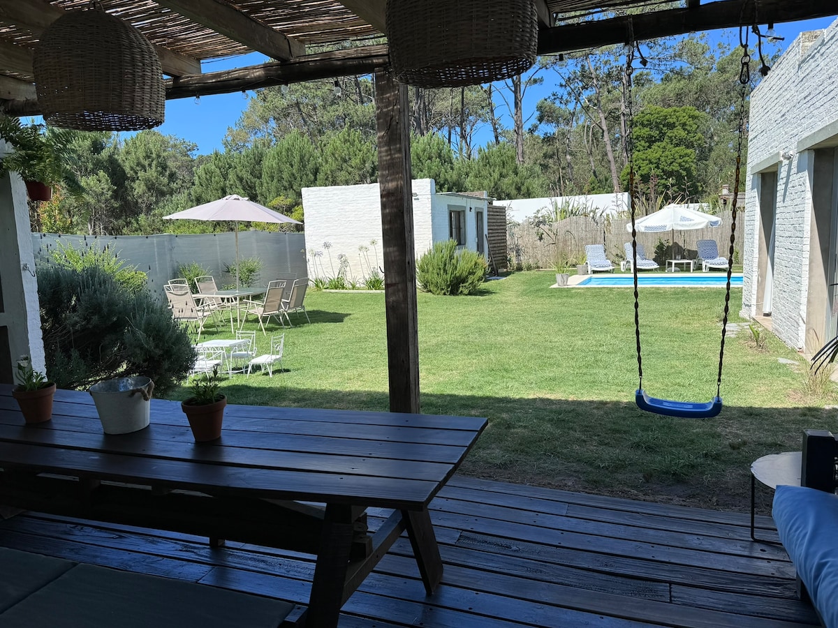 Escápate a la Barra y disfruta de unas vacaciones inolvidables rodeados de paz y naturaleza a solo 4 cuadras de ANCAP . Cerca de todo lo que necesitas: colegios, cancha de golf y de tennis, la playa y el centro de la Barra. Ideal para familia con niños o grupo de amigos. Relájate en un jardín mágico y ambiente acogedor, rodeado de naturaleza, árboles, flores y mariposas. Con un rincón especial con brasero y una gran estufa a leña muy calida para disfrutar junto al fuego.