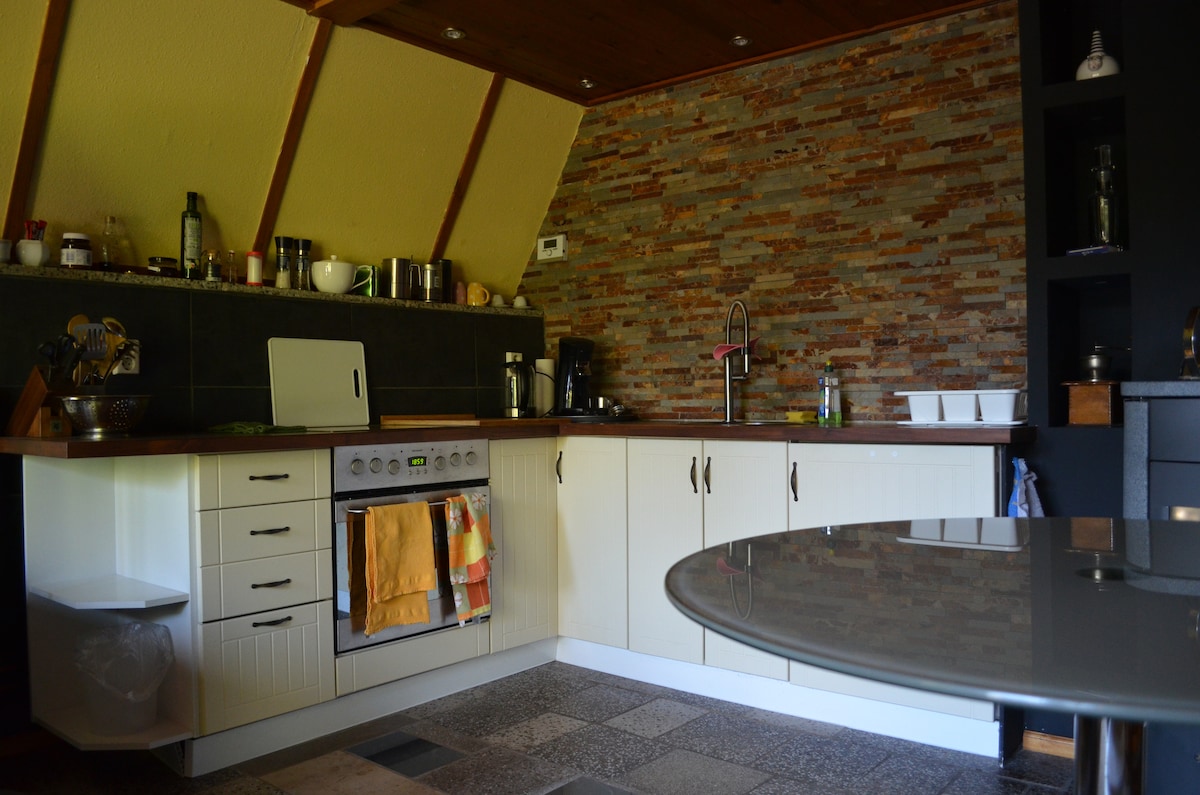 El alojamiento vacacional está en una cochera de ladrillo de 120 años de antigüedad. Tiene una vista despejada hacia el sur, a la región de Havel. En el primer piso hay una cocina combinada con sala de estar con sofá cama, terraza y jardín privado. En el segundo piso, el dormitorio, un balcón con vistas panorámicas y el baño con una ducha acogedora. Superficie (sin incluir las instalaciones exteriores): 40 m² (431 pies cuadrados). La ropa de cama y las toallas están incluidas. El loft contiguo (45 metros cuadrados) se puede alquilar. Puede alojar a 3 personas más.