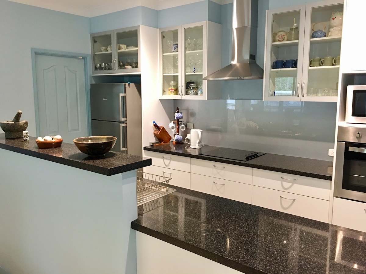 Una suite de invitados recién renovada cerca de paseos costeros, pistas de ciclismo y una cafetería. Ideal para una escapada acogedora. La suite con entrada independiente es totalmente independiente y tiene un ambiente hogareño y moderno. El dormitorio independiente tiene una cama tamaño king y se abre al salón y al comedor con vistas al jardín. Tus anfitriones (Mark y Kathy) viven en el lugar; sin embargo, la suite de invitados es privada, con su propia entrada.