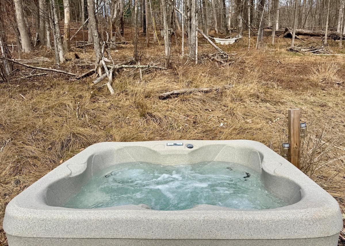 Escape to a romantic rustic tiny home nestled on 18 private acres in the Catskills, just 90 miles from NYC. This charming one-bedroom cottage is perfect for couples seeking quiet mornings, forest views, and cozy evenings under the stars. Sip coffee surrounded by nature, explore nearby trails, then return to your peaceful retreat to unwind and reconnect. A secluded hideaway with warm, five-star hospitality and true Hudson Valley charm.