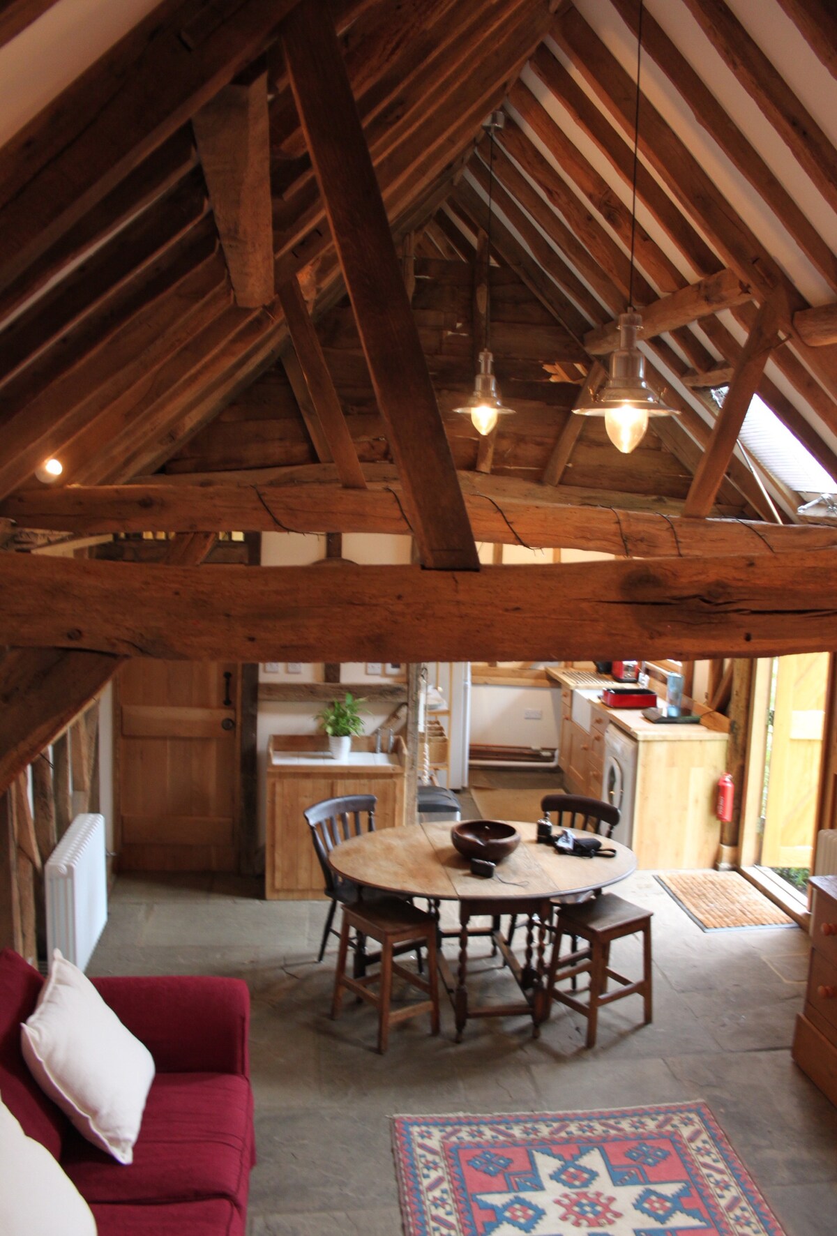 Ubicada en las colinas de Surrey, The Dairy es una casa de campo independiente, con cocina, 2 dormitorios (con un tercer dormitorio adicional opcional por un cargo adicional). Ubicada en los terrenos de la mansión del siglo XIV, The Dairy es acogedora y conserva el carácter de su pasado con vigas de madera a la vista y paredes de piedra. Disfruta de los sonidos de las ovejas pastando en el campo, almuerza en uno de los tres pubs locales y disfruta de una gran cantidad de fabulosos paseos por el campo y rutas en bicicleta a la vuelta de la esquina.