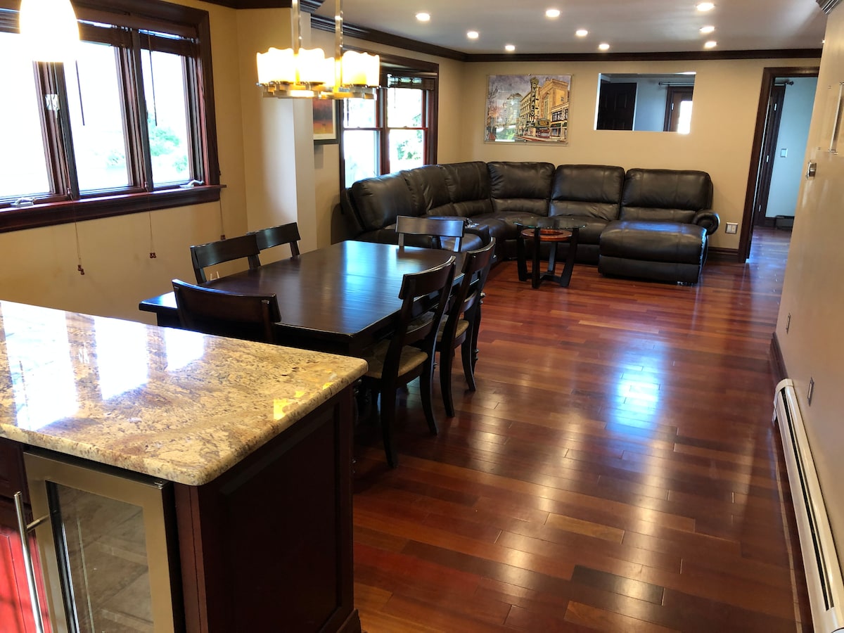 **Este es un anuncio de un alojamiento entero. No habrá nadie más en la casa.** Disfruta de una experiencia elegante en esta casa unifamiliar céntrica. Con una cocina actualizada, aire acondicionado en el dormitorio principal de la planta baja, dormitorio de invitados y ático (mayo-septiembre). El baño ultramoderno tiene una ducha a ras de suelo con 2 cabezales de ducha de efecto lluvia, 1 bañera extra profunda, suelo radiante, encimeras de mármol y bidé. En el exterior tendrás un gran porche trasero que incluye un jacuzzi y luces de cuerda para disfrutar durante la fresca noche de Buffalo.