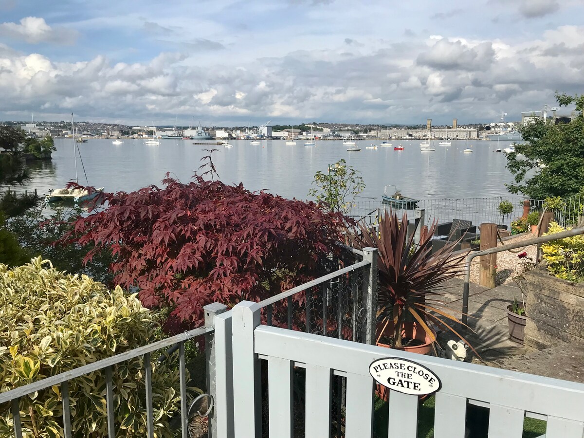Olvídate de las preocupaciones en este gran alojamiento: ¡es un oasis de tranquilidad! Apartamento de un dormitorio en la primera planta con vistas al mar a pocos minutos del Royal William Yard de Plymouth. La propiedad, una gran casa adosada construida en el siglo XVIII, ha sido nuestra casa familiar durante más de 40 años. Te invitamos a relajarte y disfrutar de las preciosas vistas del parque nacional Mount Edgcumbe y del puerto deportivo de Plymouth. En verano, te recomendamos pasar el tiempo contemplando las gloriosas puestas de sol desde tu balcón privado.
