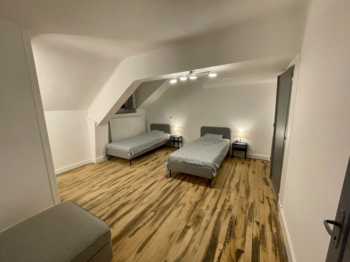 🏡 Dúplex Chroma – 120 m² totalmente equipado 🔐 Llegada autónoma 📆 Alquiler flexible: día/semana/mes 🛏️ 5 habitaciones privadas con cama doble, vestidor, escritorio y 📺 TV 🍳 Cocina moderna equipada (nevera americana, Nespresso, hervidor de agua…) 🛋️ Sala de estar acogedora con TV de 50" 🌿 Terraza orientada al sur de 25 m² 📶 Wi-Fi de alta velocidad 🧺 Lavandería completa (lavadora, secadora, plancha y tabla) 📍 Frontera luxemburguesa y estación de tren a 2 minutos ☢️ Cattenom a 15 min – Thionville a 10 min (A31) 🚗 estacionamientos gratuitos (50 m)