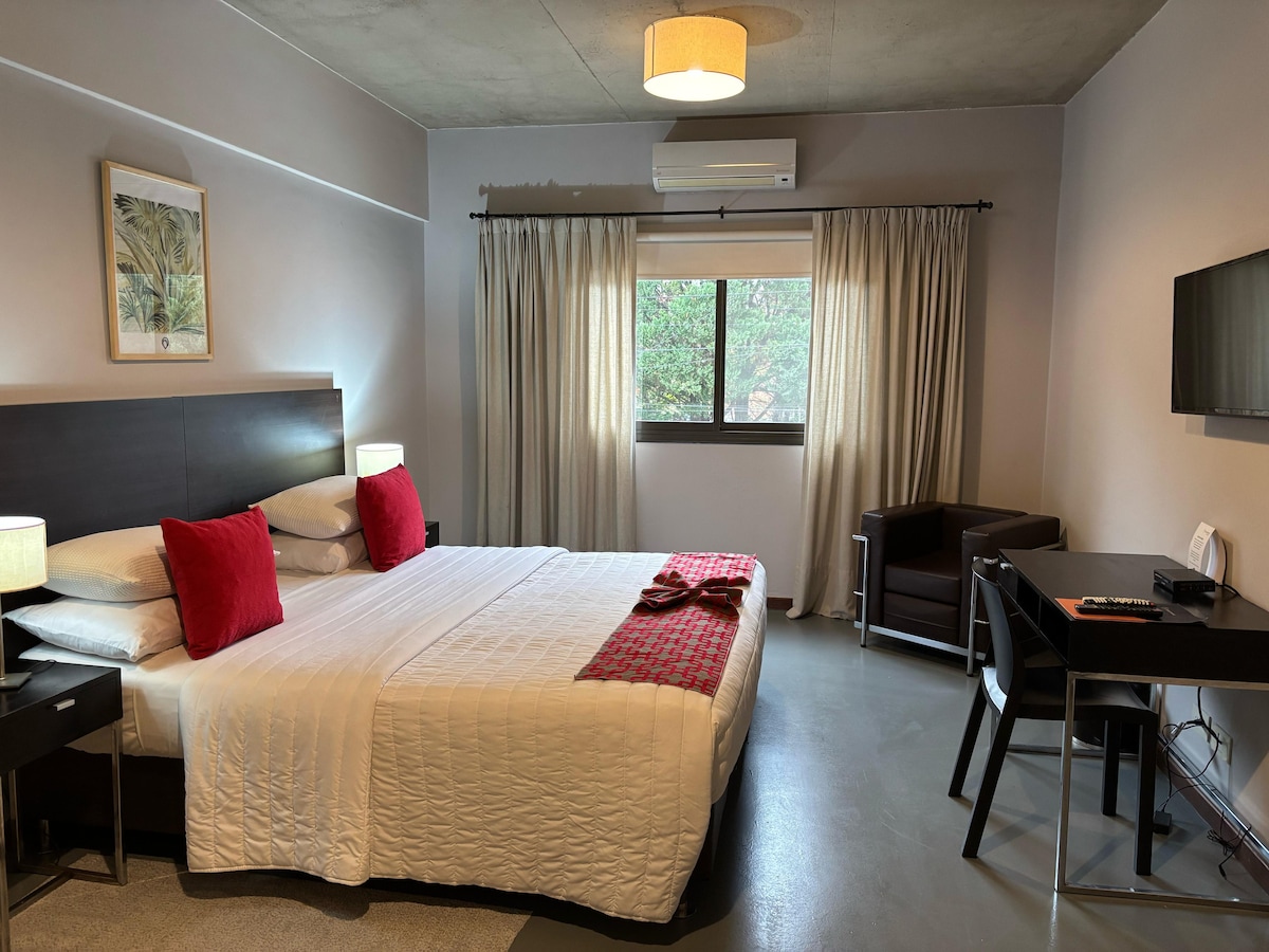 Monoambiente de 39 mts2 más un balcón de 5 x 1,40 mts, orientado hacia el Norte y con sol durante todo el año en el Complejo North Coral Plaza. Dto 223 Estilo contemporáneo, aire acondicionado, cómodos sectores de cocina, comedor, escritorio y dormitorio. Internet, TV por Internet, microondas, horno y anafe eléctricos, licuadora, cafetera de filtro y de cápsulas y equipamiento de cocina completo. Sauna. Conserje y seguridad 24 horas. Importante: sólo alojamos por AirBnb.