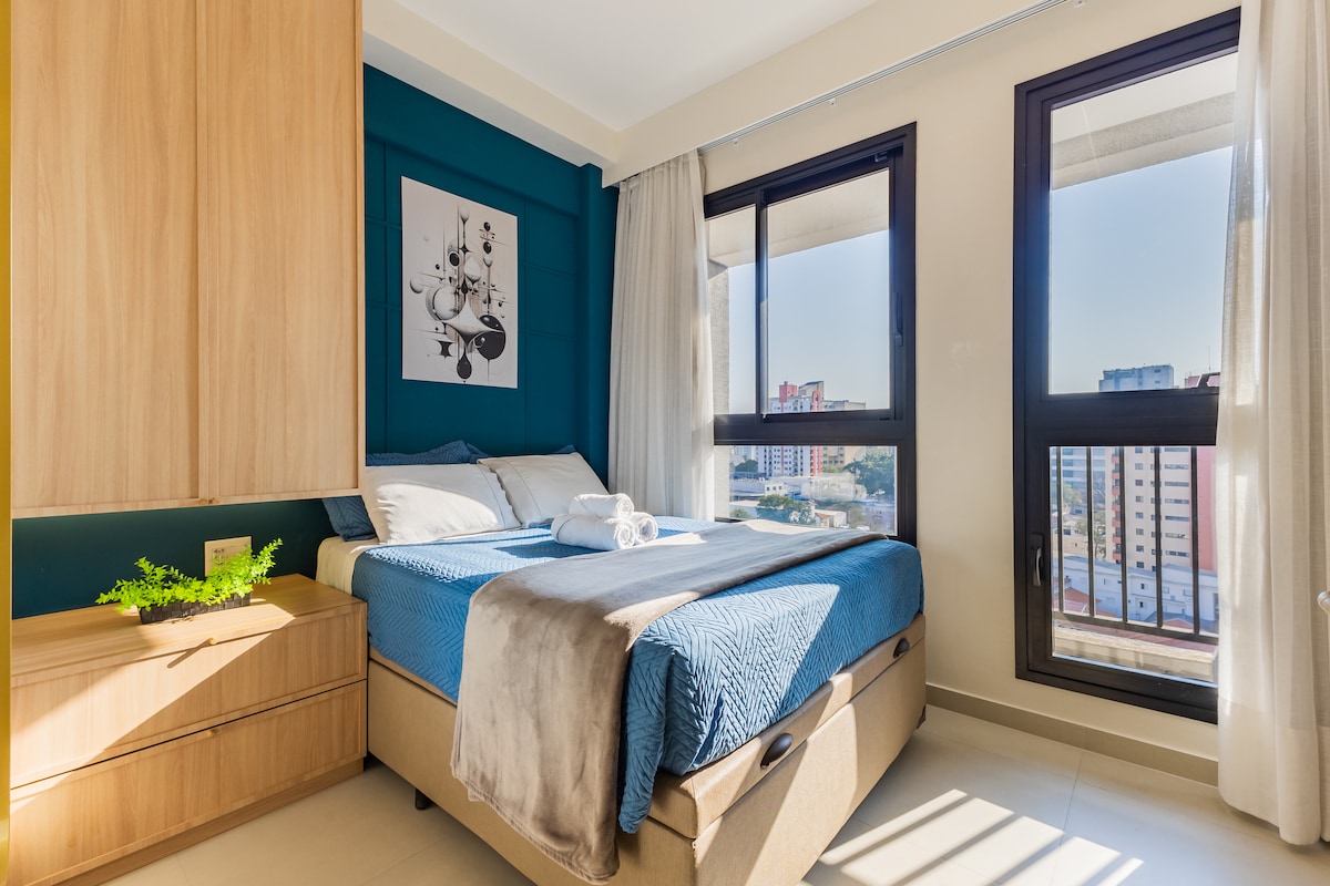 ¡Cómodo y completo estudio, ubicado en la MEJOR región de São Paulo, Vila Mariana! Barrio donde se ubica el parque Ibirapuera. Un edificio nuevo, moderno, seguro y que cuenta con piscina, sauna, gimnasio, entre otros. El apartamento es completo y funcional, lleno de armarios, tiene cama QUEEN, aire acondicionado, cortinas blackout, balcón espacioso y cocina completa. La ubicación es estupenda, a 6 minutos a pie del metro. Hay más de 100 restaurantes en un radio de 1 km y a 10 minutos a pie de la Av Paulista.