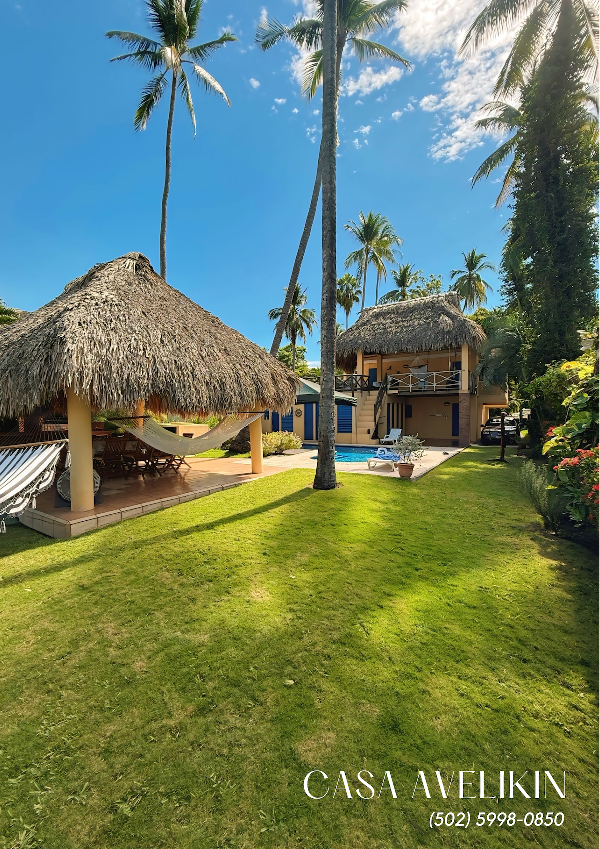 Con tu familia crea recuerdos inolvidables en esta casa en condominio seguro, con cocina moderna completamente equipada. Piscina privada grande con diferentes alturas para todas las edades, y múltiples sombrillas para tener sombra en la piscina. Acceso privado a la playa. Mesa de Ping-Pong, Juegos de niños y jardín de 500 metros para juegos al aire libre. Duerme cómodamente en 5 habitaciones con aire y TV, 16 camas en total. Parqueo para 4 carros dentro de la propiedad, más parqueos de visita.