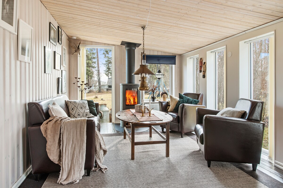 Casa fresca con espacio para cuatro personas. Aquí disfrutarás de lo mejor que la naturaleza puede ofrecer, durante todo el año. Lee un libro en el muelle y nada en el lago Stora Aspen cuando haga demasiado calor. Saca el roble y echa el lucioperca que asarás a la parrilla. Recoge setas a la vuelta de la esquina, toma el sol en el muelle, camina sobre el hielo, pesca una perca, camina por el sendero de servicios públicos o disfruta sin hacer absolutamente nada. Si te cansas de la paz y la tranquilidad, puedes ir al centro comercial más grande de Västerås en 40 minutos.