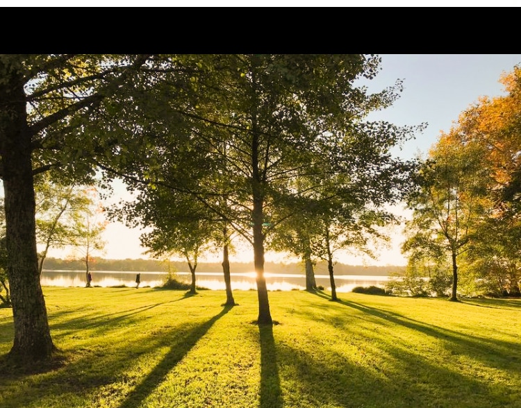 Un pequeño paraíso bajo los pinos frente al estanque