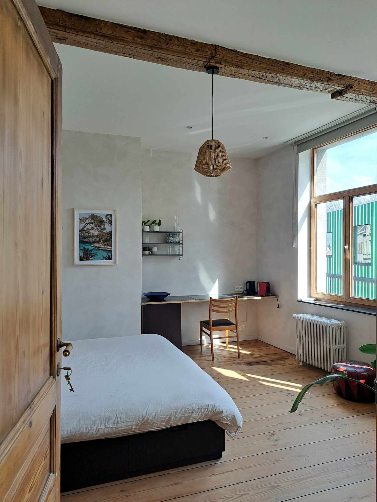 Bienvenido a este luminoso, espacioso y soleado apartamento. Se encuentra en el último piso de mi apartamento de 2 plantas, que forma parte de una gran villa antigua. Hay un dormitorio doble, baño con ducha e inodoro y una sala de estar con cocina. Se incluyen dos bicicletas. ¡El aparcamiento es gratuito!