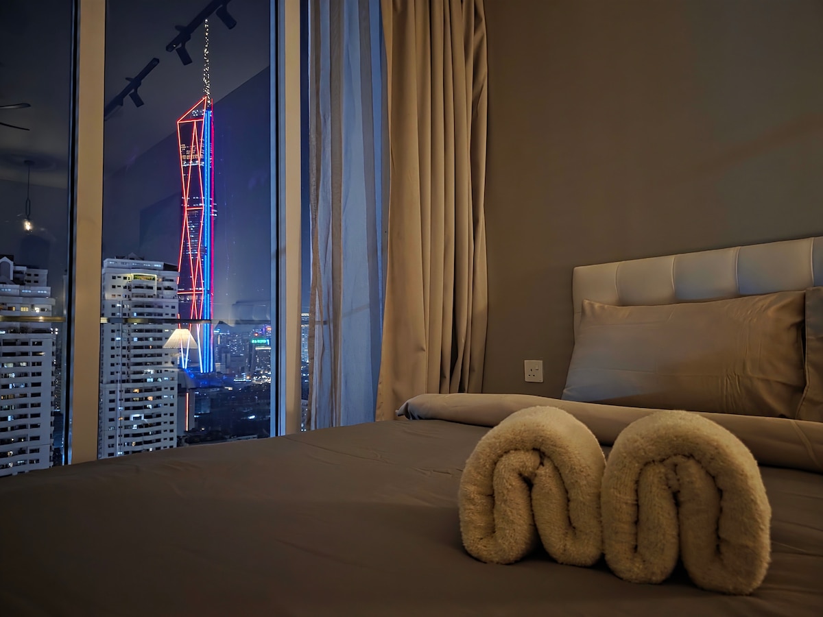 Nuestra hermosa, fresca y cómoda casa de familia se encuentra en el distrito central de negocios y en el área del Triángulo Dorado.El piso 51 tiene una piscina infinita con magníficas vistas, rodeada de todas las torres icónicas de Malasia, incluidas las Torres Petronas, la Torre KL, Suria KLCC y la Torre Merdeka Square. La casa está convenientemente ubicada a 100 m de la estación de MRT de Conlay y a 1 km del centro comercial Pavilion, KLCC, TRX y muchas otras atracciones populares en Kuala Lumpur.También hay disponible entrega de comida las 24 horas. El espacio [Anfitrión] ≥ vicky es * Por - Superanfitrión [Check-in/Check-out] Check-in/check-out autónomo las 24 horas [Huéspedes] Perfecto para 2-4 huéspedes (familia o amigos amigos) [Distribución] 2 dormitorios, 1 baño, 840 pies cuadrados [Camas] 1 cama tamaño king y 1 cama tamaño queen [Servicios] Wifi súper rápido, lavadora/secadora, TV, aire acondicionado, toallas, pañuelos, jabón de manos, gel de baño, champú, café, [Solo cocina] Freidora ligera, cocina de inducción, cafetera, hervidor de agua. [Instalaciones del departamento del hotel] Salón Gimnasio Sala de yoga Sala multiusos Sala de juegos Baño de vapor Tierras altas tranquilas - Piso 33A Cocina pequeña Sky Lounge Tumbona en el jardín Adventure Meadow - Nivel 8 Zona de juegos para niños Zona de barbacoa Salón multiusos Rock Garden Área de lectura Juegos de mesa Terraza multifuncional Mesa de tenis de mesa Césped multifuncional Recordatorio: ecológico ♻️ No se proporciona pasta de dientes ni cepillo de dientes desechables