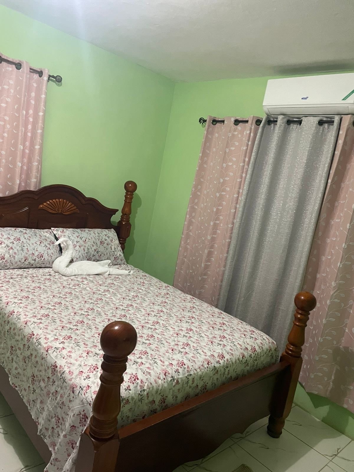Casa de 3 dormitorios equipada con aire acondicionado, calentador de agua solar y eléctrico, TV y electricidad generada por viento/solar. Cerca de la playa, tiendas, restaurantes y vida nocturna. **Lavadora y secadora disponibles por un coste nominal. También escucharás y verás cabras, gallinas/gallos, perros y los sonidos habituales de la vida en la comunidad. **El desayuno (jamaicano) se proporcionará por un coste adicional. Capacidad para seis (6) personas; 2 camas tamaño queen y 2 camas individuales convertibles en tamaño king. ¡Wifi gratis!