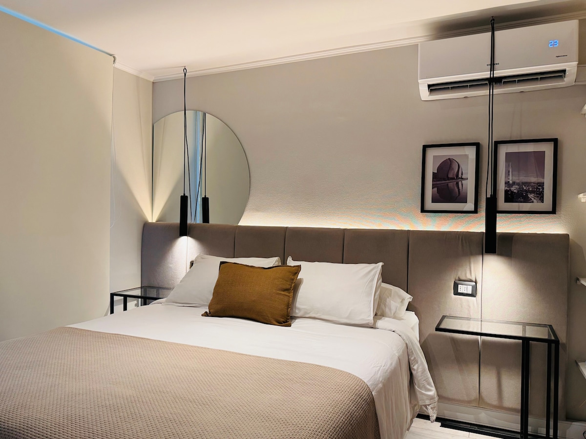 Amplio y luminoso departamento en el corazón de Santiago 🌆. Ideal para viajeros que buscan comodidad, independencia y una gran vista a la ciudad. Con diseño cálido y funcional, ofrece Wi-Fi rápido, Smart TV, cocina equipada y espacios acogedores. Ubicado cerca del metro, cafés, museos y los principales atractivos turísticos, es el punto perfecto para disfrutar Santiago a pie y descansar con todo el confort.