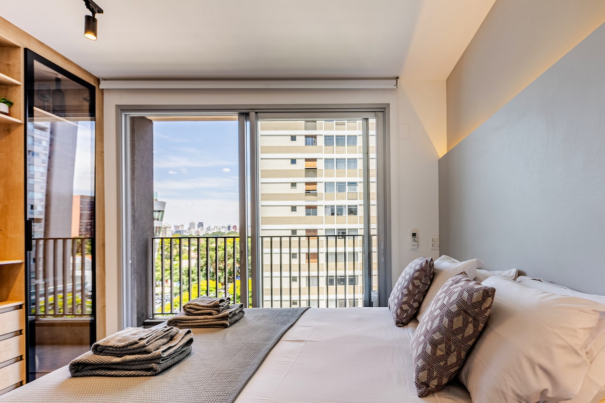 Bienvenido a tu refugio urbano en Faria Lima. Este nuevo estudio completo y funcional es perfecto para aquellos que buscan comodidad y practicidad en una de las regiones más valoradas de São Paulo. A 🚇 5 minutos a pie del metro Gimnasio 🏋️♂️ moderno y coworking en el edificio. 🌇 Azotea con vista y piscina 📡 Wifi de alta velocidad para el trabajo a distancia Estarás cerca de cafeterías, restaurantes y el centro financiero de São Paulo. Ideal para viajes de negocios o escapadas rápidas a la ciudad. Reserva y ven a relajarte con estilo.