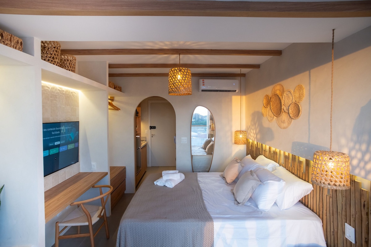 ¡Barra es uno de los barrios más queridos y visitados de Salvador! ¡Aquí encontrarás días soleados durante casi todo el año, baño de mar en Porto da Barra y una puesta de sol impresionante en el faro! El estudio es nuevo, tiene una cama doble y un sofá cama para hasta 4 huéspedes con mucha comodidad, además de una hermosa hamaca para que te balancees en Bahía. Tenemos una plaza de aparcamiento. ¡Y hay una maravillosa azotea con vista al mar! ¡Será un placer recibirle a usted y a sus amigos o familiares!