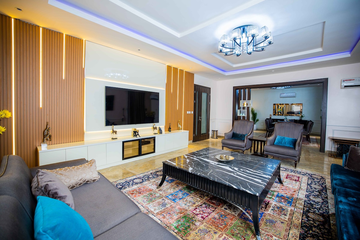 Disfruta de una experiencia elegante en este lugar céntrico. Un hogar lejos de casa, con una decoración de última generación y servicios para que disfrutes de una estancia inolvidable. Las instalaciones incluyen: -Play ! 5 - Wifi. - proximidad a lugares principales. A 2 minutos en auto de Maitama y a 5 minutos en auto de Wuse 2. - Electricidad las 24 horas con inversor y generador. - 2 balcones. -2 salas de estar - Televisores inteligentes en todas las habitaciones y salones.