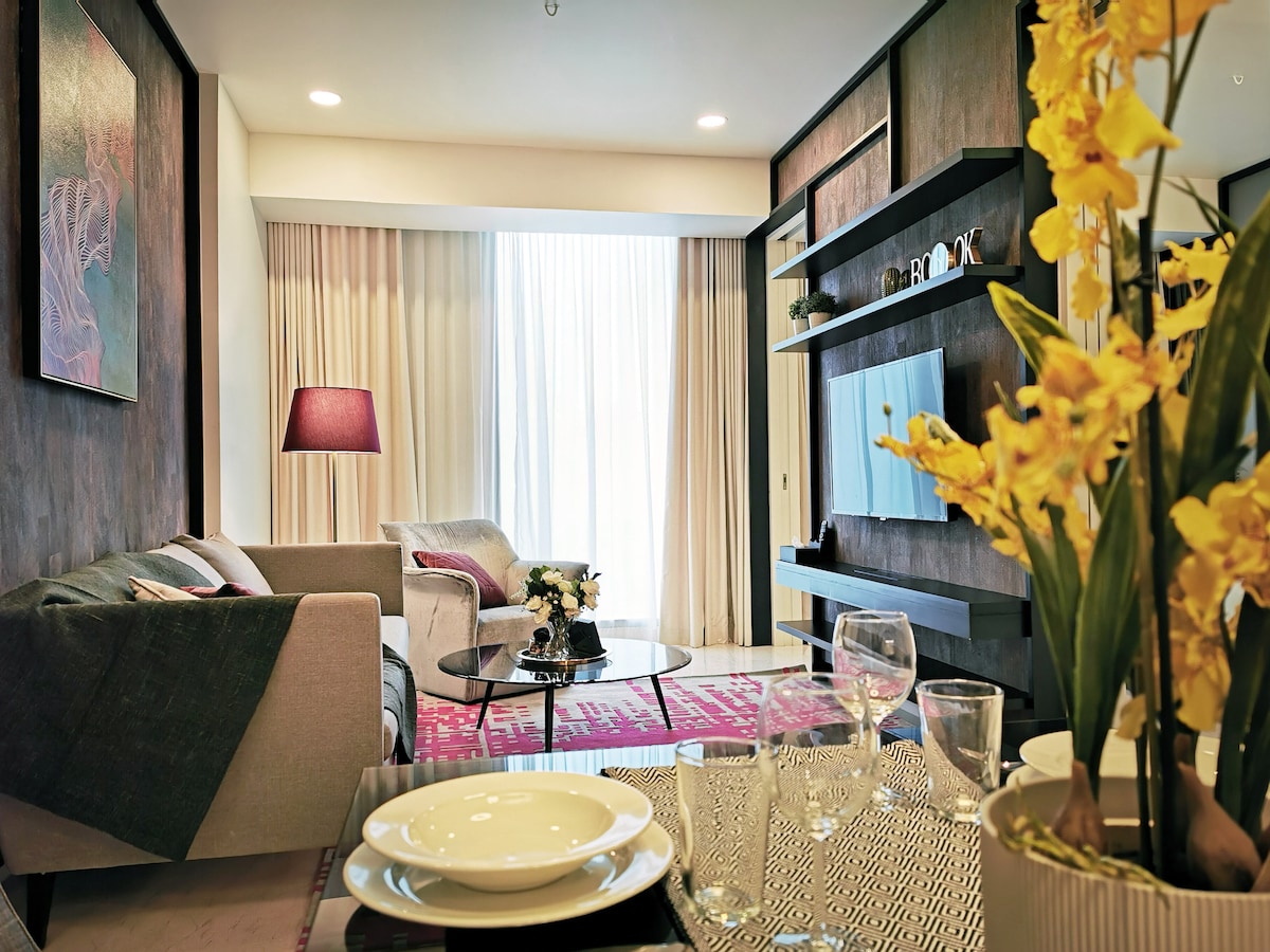 Scarletz Suites is a luxury serviced apartment located in Kuala Lumpur, Malaysia, developed by Exsim. Its designed for long-term & short-term stays, suitable for business & leisure travelers, fully furnished & equipped with modern amenities such as kitchenette, living room & private bathroom. It has swimming pool, gym & a 24-hour security service. Located in a prime area, providing easy access to the city's major shopping, dining and entertainment destinations, near KLCC & Petronas Twin Tower.