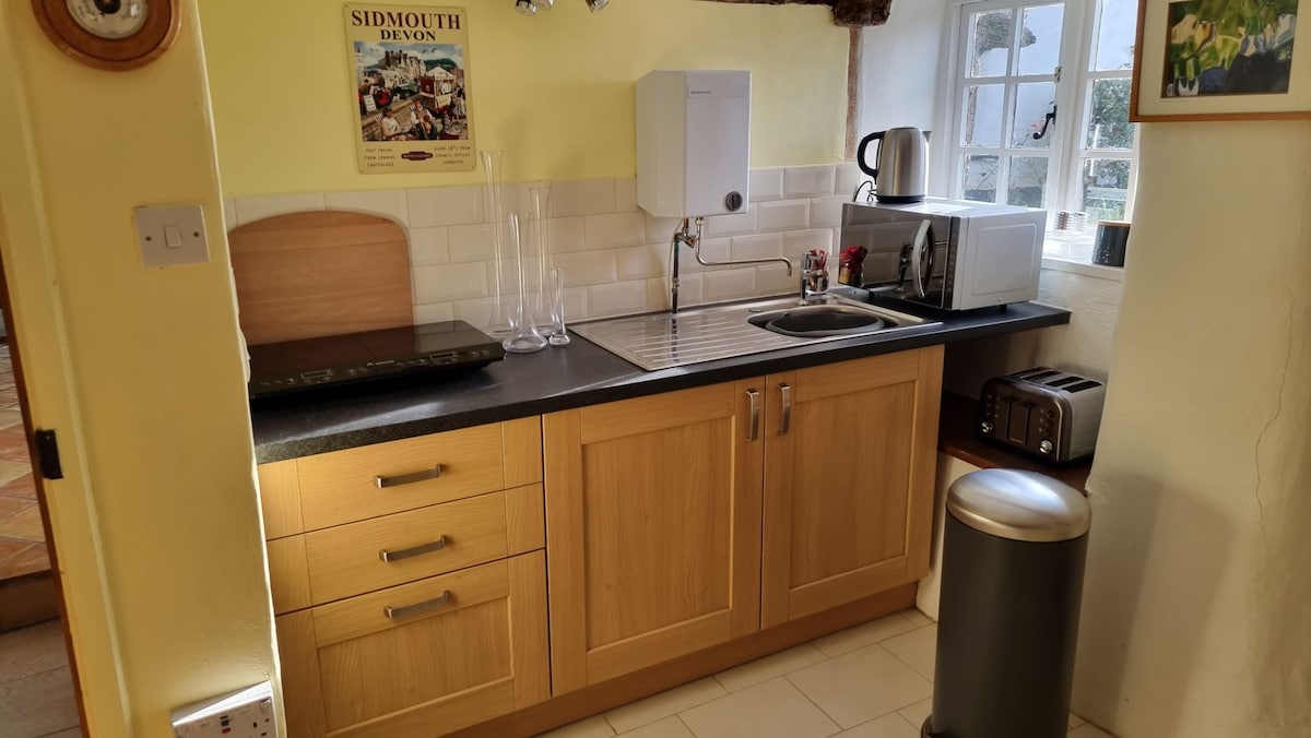 Esta encantadora casa de campo espaciosa está junto a la casa del propietario, situada en 3 acres de jardines y hermosos paisajes en el corazón de la zona de East Devon de excepcional belleza natural. Es una base estupenda para caminar, montar en bicicleta, hacer turismo, ir de compras, comer y beber... y acurrucarse frente al fuego de leña. El pueblo de Sidbury está a 20 minutos a pie. Y Sidmouth, en la Costa Jurásica, está a solo 4 millas en coche. ¡Unos días en Filcombe te dejarán relajado, renovado y con ganas de volver!