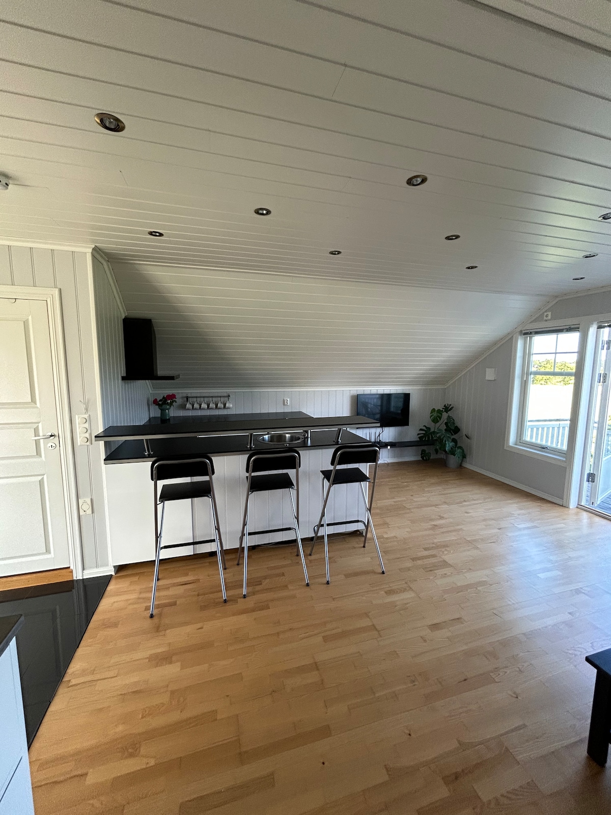 Está ubicada en la planta baja de nuestra casa con vistas al centro de la ciudad de Sandefjord. Se necesita un tramo de escaleras para llegar. Por lo tanto, no es adecuado para huéspedes con dificultades para caminar. El apartamento da al norte y tiene un poco de sol por la mañana en verano. Cerca de muchas playas para nadar y áreas al aire libre. Hay una parada de autobús a 10 minutos a pie de nuestra casa. A 30-40 minutos a pie del centro de Sandefjord con varios restaurantes y tiendas. Supermercado a 10 minutos a pie de nuestra casa. A 2 minutos en coche. A 15 minutos en auto del aeropuerto de Torp.