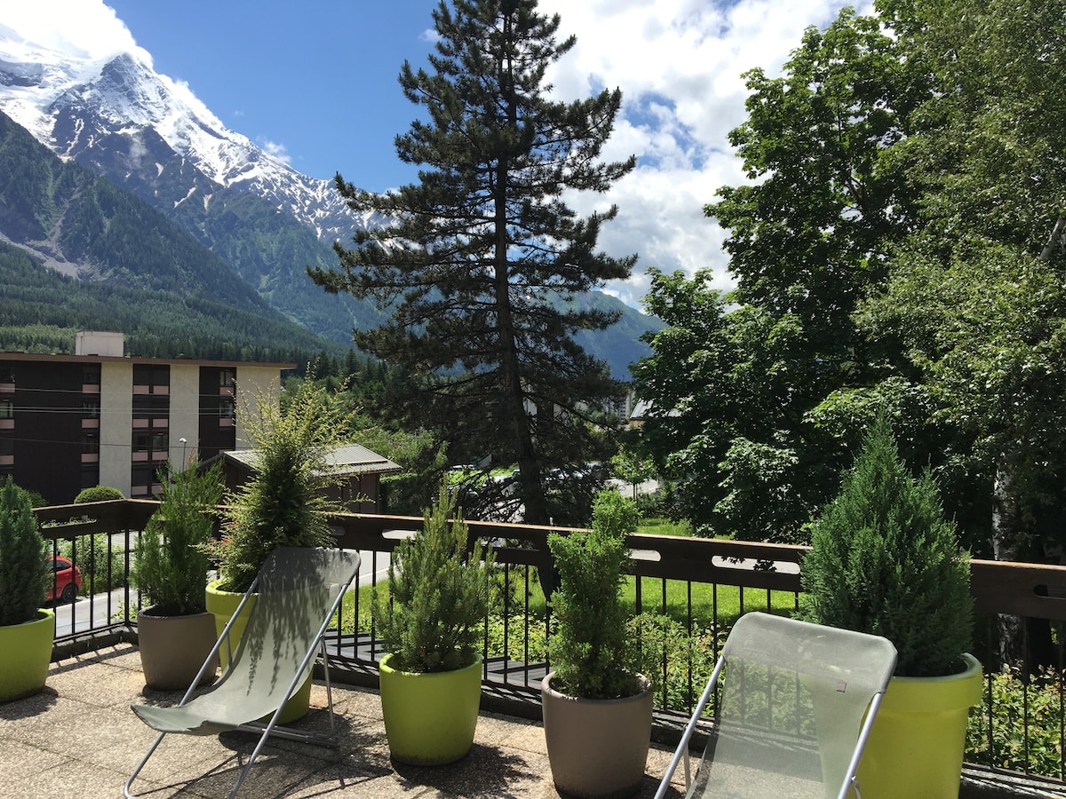 80 m2 centro de Chamonix, vista panorámica M-B, jardín.