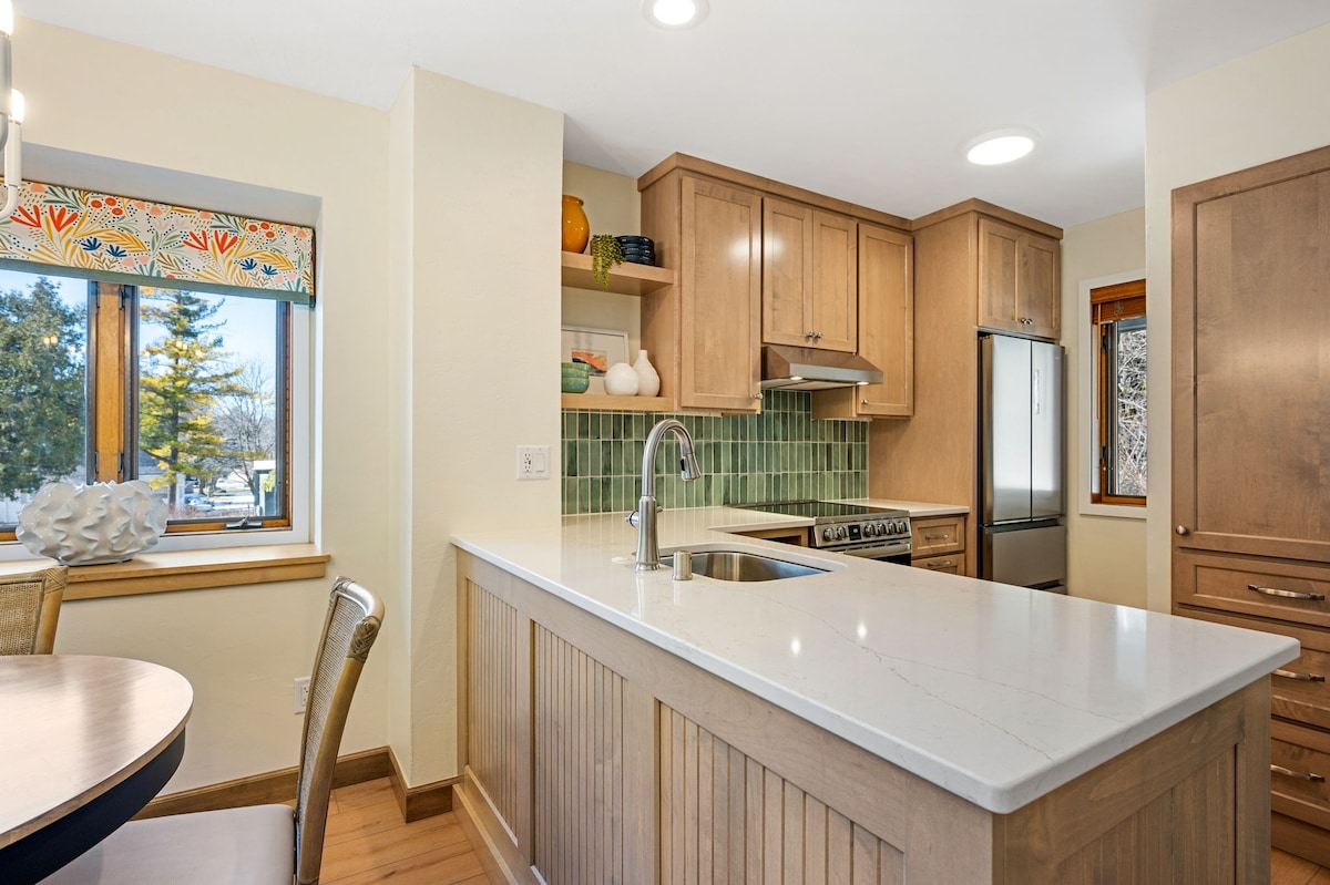 Operado por el propietario + entrada independiente + sin espacios compartidos ¡Oportunidad rara de alquilar la unidad del desarrollador en el nuevo desarrollo de condominios con vistas al puerto deportivo de Sister Bay! Armarios personalizados, encimeras de cuarzo, electrodomésticos de acero inoxidable, estacionamiento en garaje y más te esperan en este alquiler vacacional dedicado. Sal por la puerta de tu patio hasta 14 restaurantes, bares y cafeterías, incluido el famoso Al Johnson 's. Tour virtual en lo más destacado de IG "@101sisterbay"