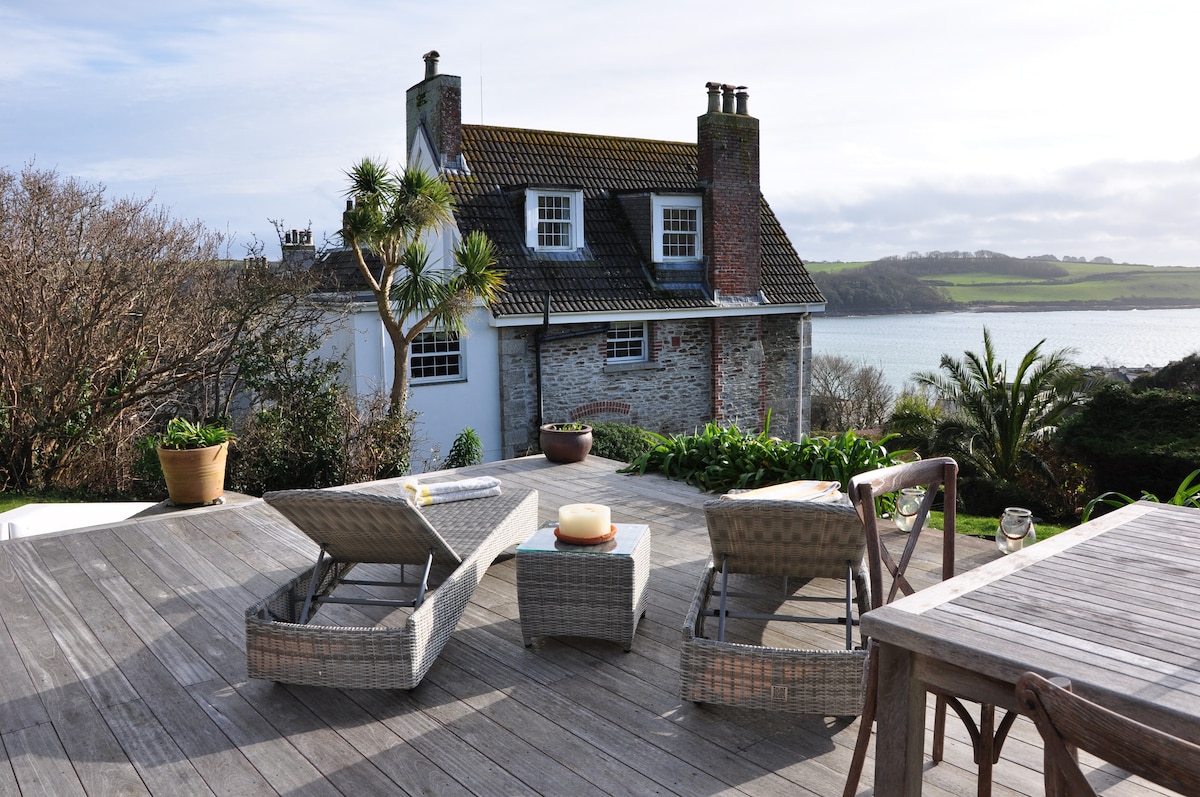 Impresionante casa de campo de lujo en Cornualles con vistas panorámicas al mar y al puerto con jacuzzi - Destacada en George Clarke's Amazing Spaces de Channel 4 Situado en una hermosa bahía donde se ven focas y delfines con regularidad A menos de 5 minutos a pie de los restaurantes, bares, pubs, heladerías y el antiguo puerto de grado 2 que muestra exquisitos barcos altos y famoso por el conjunto de películas de Poldark y Alicia en el País de las Maravillas. Esta propiedad es administrada por Cornish Stays LTD - Nombre de la propiedad: Harbour Lights