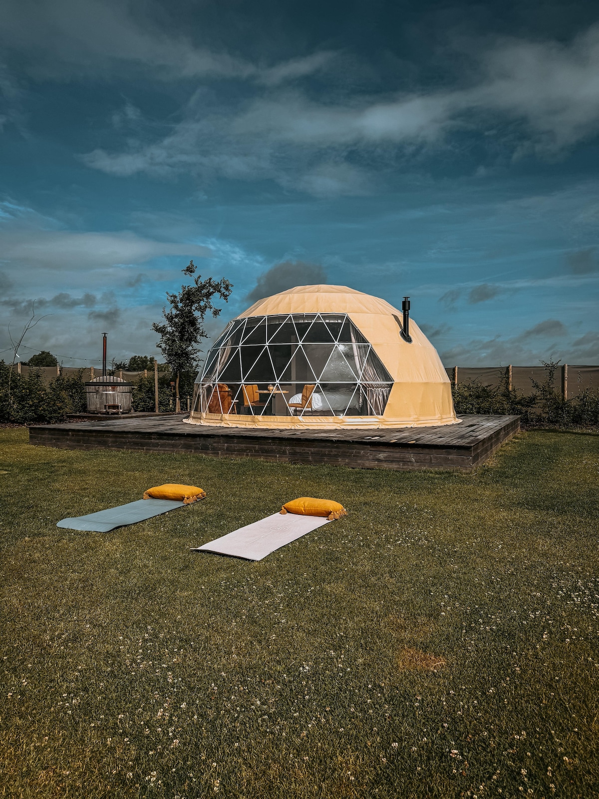 una cúpula ubicada en medio de la naturaleza, privada para ti. - Jacuzzi Terraza privada Aire acondicionado Estufa de paleta Refrigerador Microondas Ducha exterior Cafetera con inodoro de compost - No puedes cocinar dentro de la tienda por razones de seguridad, pero especialmente trae algunas golosinas para calentar en el microondas/horno y puedes guardarlo en la nevera/congelador. También existe la posibilidad de usar la barbacoa. todo lo que necesitas para una experiencia inolvidable en medio de la naturaleza.