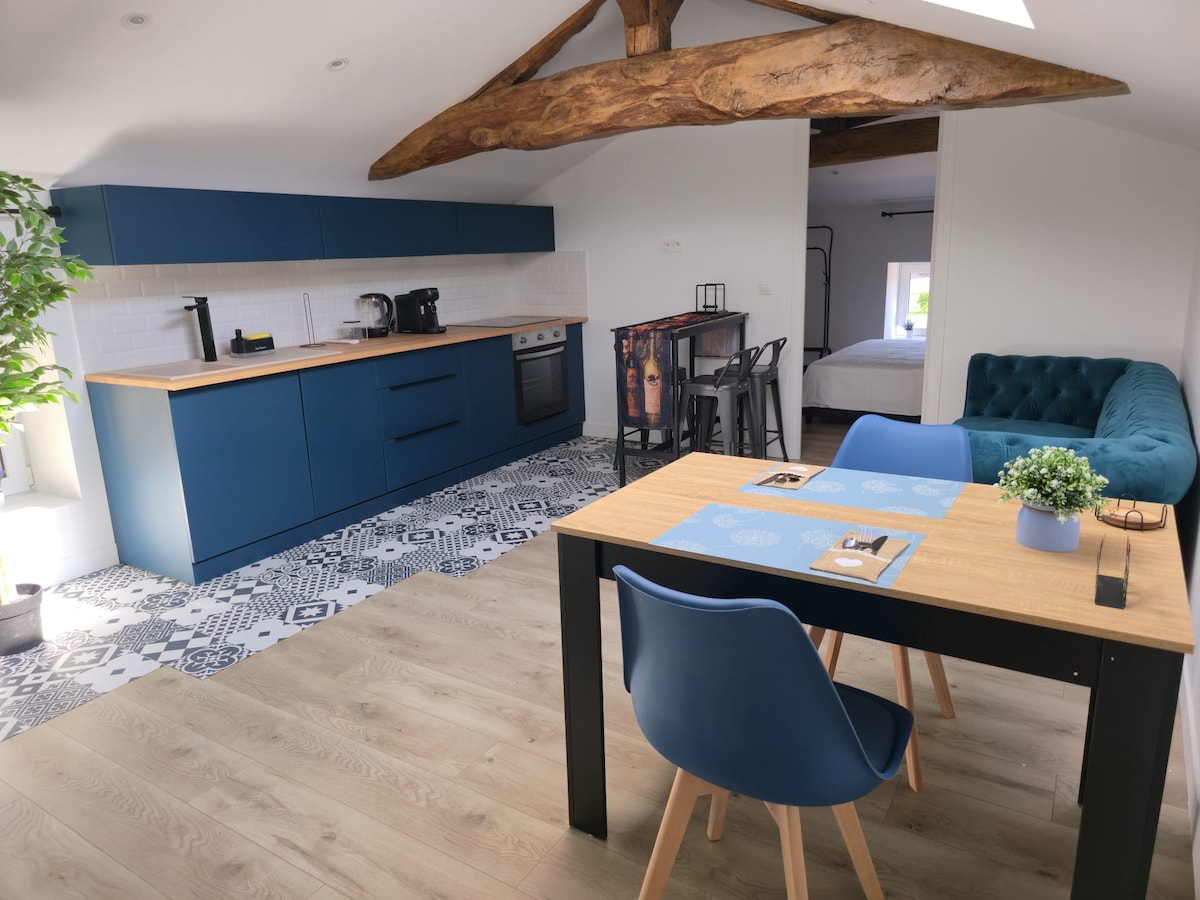 Venga a descubrir el encanto del sur de Borgoña, en Igé. Nuestro estudio, totalmente independiente de nuestro alojamiento, con terraza privada, te garantizará tranquilidad y comodidad durante tu estancia. Se puede aparcar en nuestro patio privado. Se proporciona un mando a distancia para abrir el portal. Nuestra casa se encuentra a 15 minutos de la autopista, de Mâcon, a 15 minutos de Cluny.20 minutos de la Roche de Solutré. Se proporcionan toallas y ropa de cama.