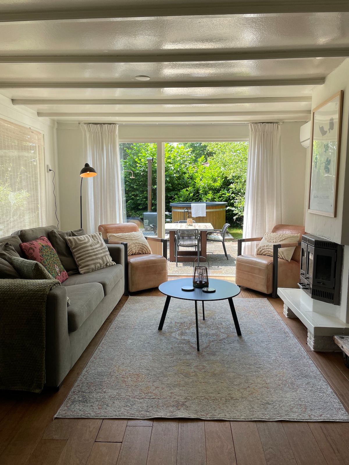 • The Veluwe is the largest push moraine complex in the Netherlands. On the north-western edge of this forest you find this gazebo near the locally famous sand drift. It sits on 3 acres of woodland belonging to a detached house. • The gazebo is fully insulated and consists of three spaces: bathroom, bedroom and lounge. There is no cooking option, but there is a small oven for you to use. • The gazebo was fully renovated in 2023 and is decorated in a contemporary mid-century modern style.