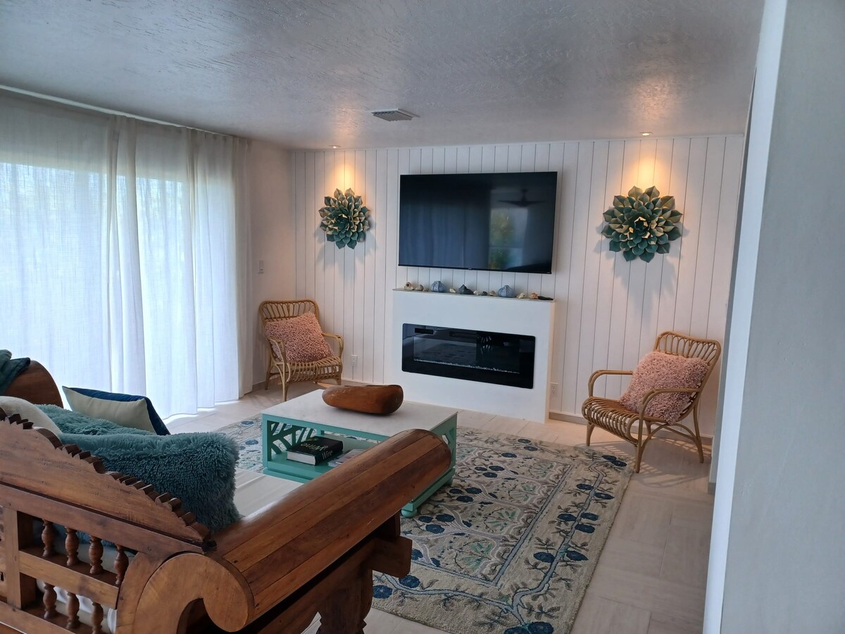 No hay lugar como la Cocoa Villa 🌴🏖️ ¡Disfruta del encanto de Cocoa Beach en nuestra villa Cocoa! Ubicado a solo una cuadra de la playa y del centro de la ciudad, este moderno refugio de estilo español ofrece comodidad y comodidad. Con 2 dormitorios, 4 camas y acogedoras zonas de estar, es tu escapada costera perfecta. Explora la ciudad o toma el sol y luego vuelve a tu tranquilo oasis para relajarte junto a la chimenea bajo las estrellas. ¡Tu inolvidable viaje a la playa te espera!