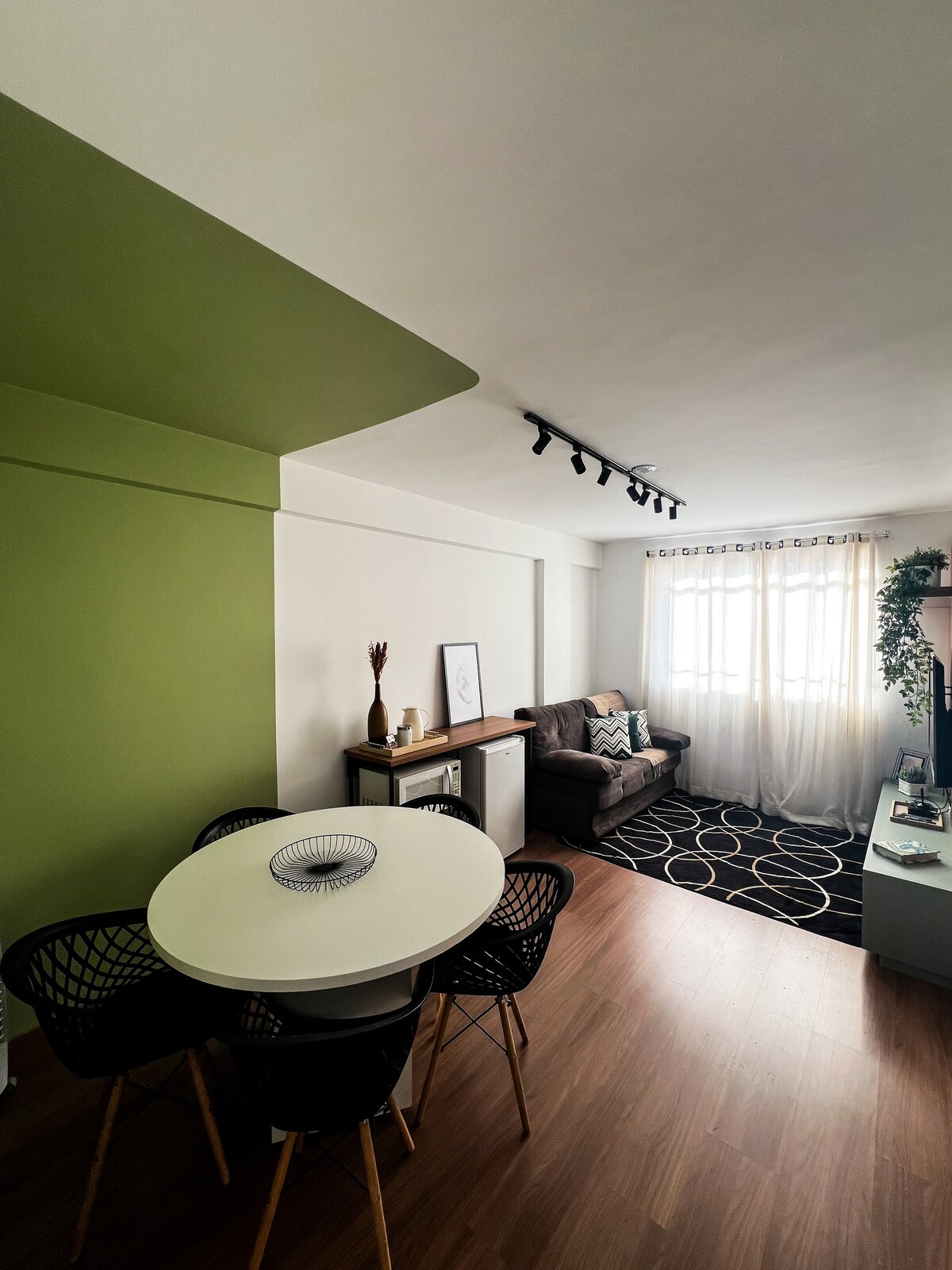 Apartamento nuevo, recién construido a 5 minutos en coche del centro de la ciudad (3 km). El edificio está en una zona residencial y el apartamento tiene 2 dormitorios con balcón, una suite y un baño. La cocina es de estilo americano, que está integrada con la sala de estar que tiene un gran televisor de 50'' con Internet. Nuestro espacio es seguro y sigue los protocolos de higiene de Airbnb. Tiene un espacio de estacionamiento interno, pero con capacidad para dos coches pequeños. El apartamento está en la planta baja (no tiene escaleras).