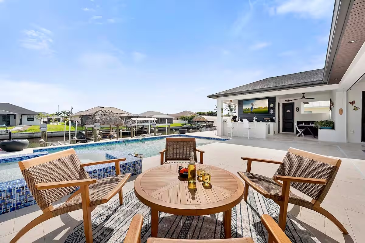 ¿Te gustaría nadar, relajarte al aire libre, pescar y disfrutar de hermosas puestas de sol en un amplio canal de acceso al golfo? Si es así, ¡te enamorarás de esta impresionante casa de nueva construcción hecha a medida! La casa de 2750 pies cuadrados es luminosa y espaciosa, con dos dormitorios principales en suites y un ala familiar separada. ¡La cocina gourmet, el comedor y la gran sala se abren a través de grandes ventanales al lanai y la piscina con vistas al canal en el muy deseado suroeste de Cape! ¡Villa inspirada en la playa! ¡Gran paseo de capitanes y Tiki! ¡Echa un vistazo a nuestras evaluaciones!